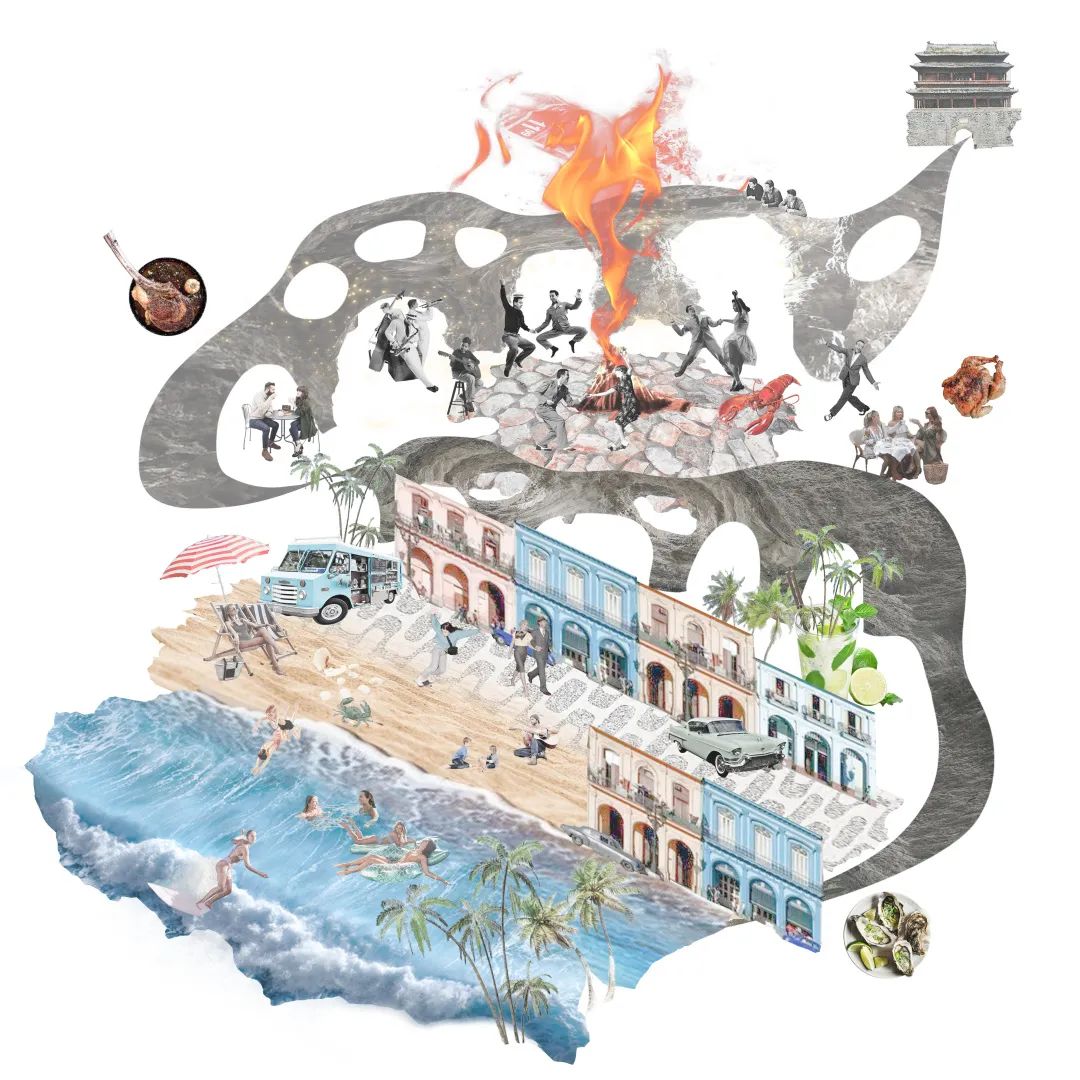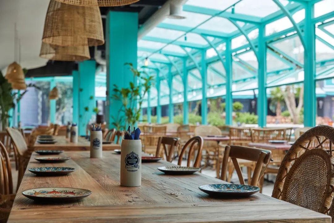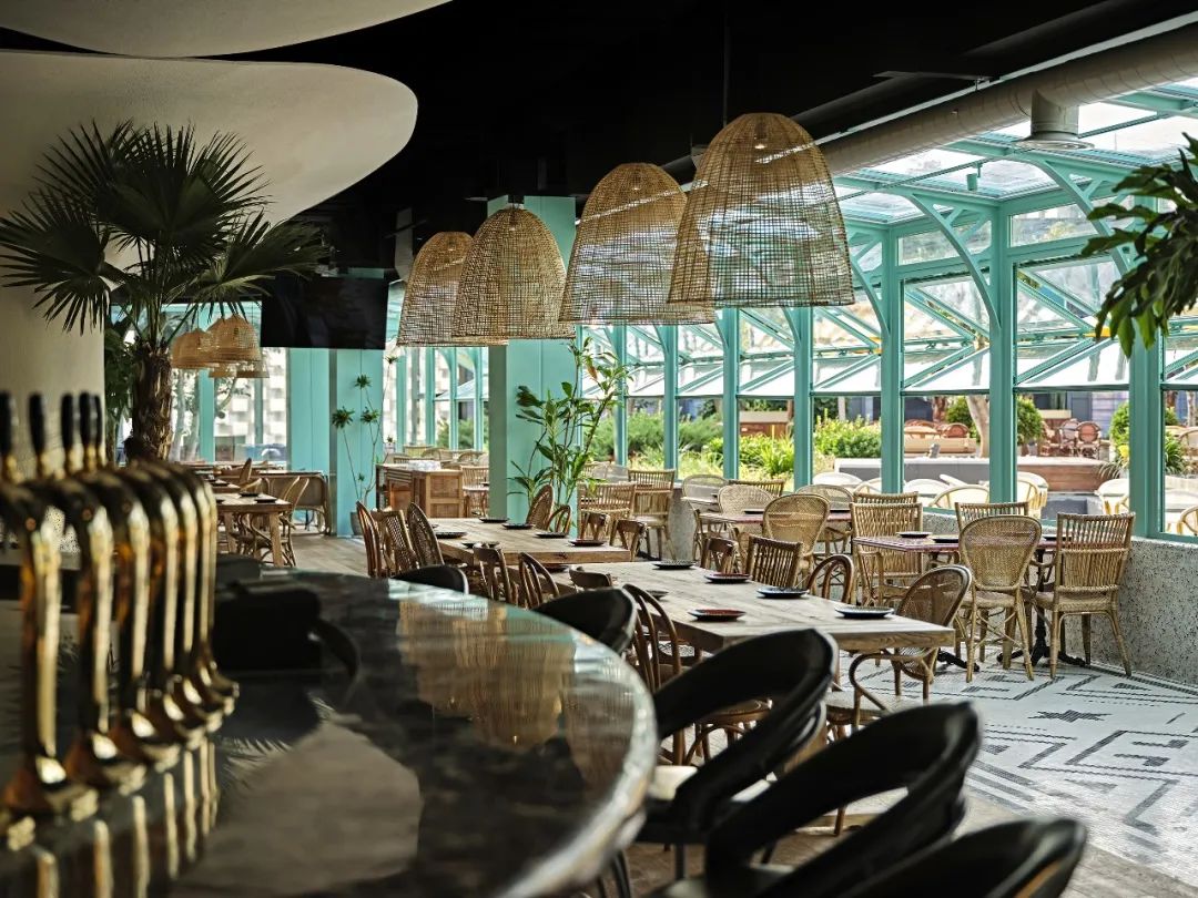 穿过温暖而丰富的用餐区,当打开通往户外平台的门,阳光之下则是一片炫目耀眼的哈瓦那蓝。从远古意向到城市绿洲,从安全自在到肆意奔放,设计师与兰巴赫似乎想要将过往两年人们所历经的长久压抑,在一次体验中全部释放,将所有不安与焦虑交付给哈瓦那的色彩与艳阳。