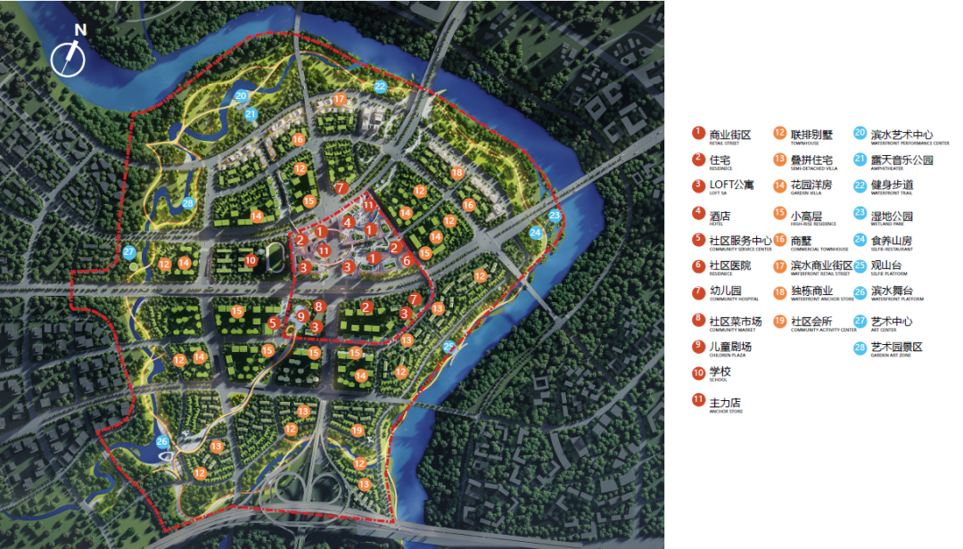 The area involved is located in the heart of the Longsheng area, one of the three major sub-centers of Chongqing's new city, surrounded by a number of high-tech industries. In close proximity to parks and key railway stations, the project site is also surrounded by three rivers, forming a peninsula enveloped by beautiful sceneries.