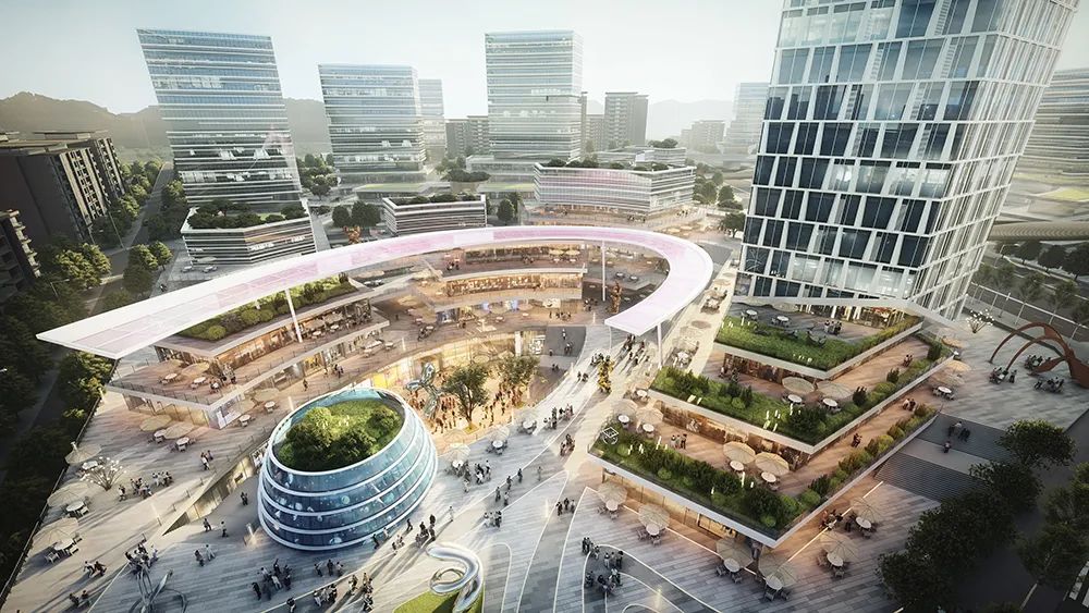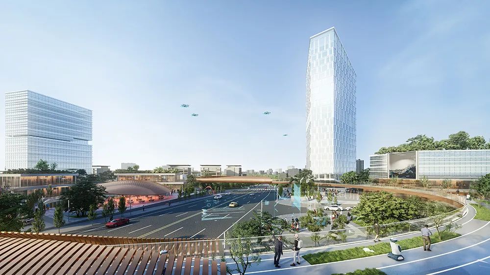 Overall, the project is planned with the structure of a central ring, outer belt, and various pathways. The center is attached to a metro line to create a TOD commercial core region, around which revolves a functional ring that offsets the fragmentation caused by high-speed roadways, hosting a retail center as well as various public community service functions.