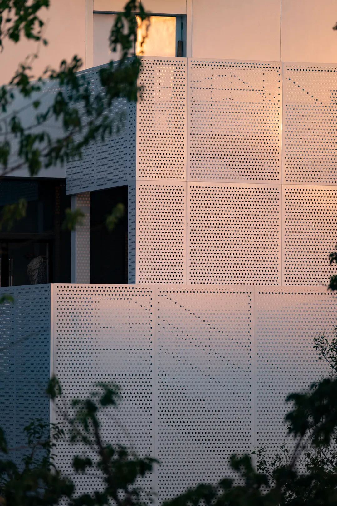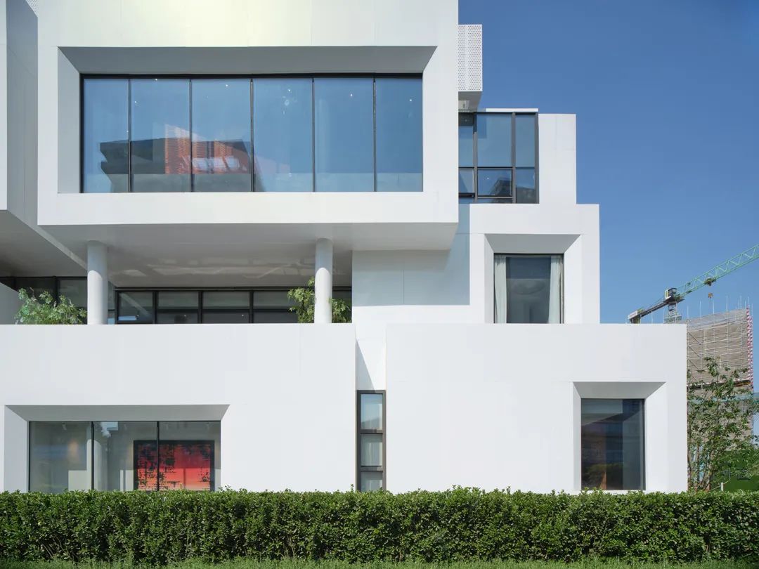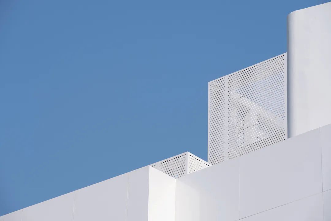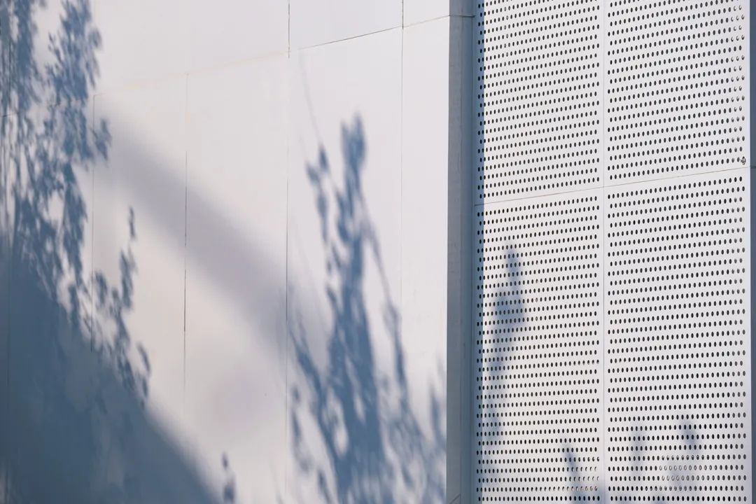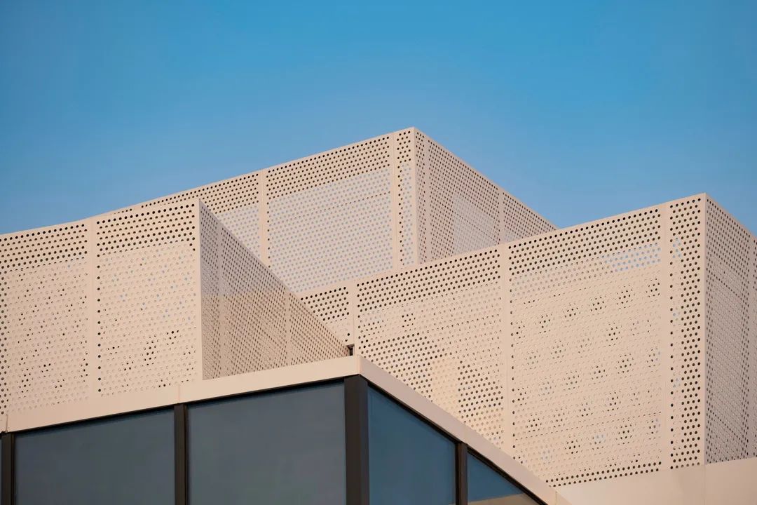 示范区这座山由两部分组成,建筑本体和建筑附加的消防楼梯以及屋顶上的构筑物。前者通过铝板和玻璃塑造出了实的体积,而后者用穿孔铝板创造了虚的形体。虚实相辅相成地构成了凡人生活的纪念碑山。