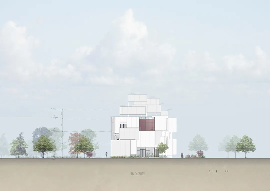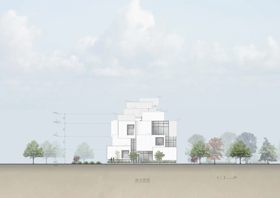 我并不想回到完成功能布局后披一件立面的老路上。当功能和立面失去关联后,什么样的立面都可以。最后建筑师沦为化妆师而疲惫于不断为甲方提供不同的方案直至耗尽双方的体力和耐心。当然我也不会放弃舞台的构思。