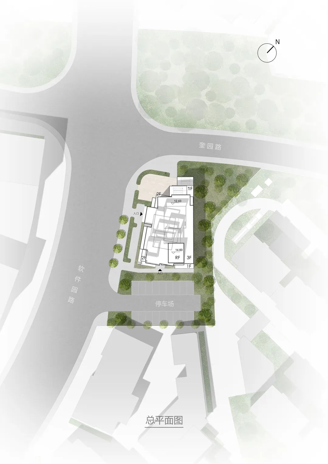 我接到邀请设计的电话时,正在山里堪地。在断断续续的信号中我了解到这块地是在江苏最北的三线城市(有时被归到二线)的旧城和新区的边界上。甲方否定了原来的方案,希望我能在狭长的交界处能创作一个不一样的示范中心。