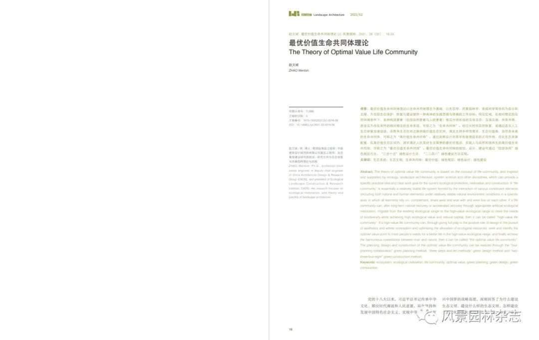 赵文斌.最优价值生命共同体理论[J].风景园林,2021,28(S2):16-24.