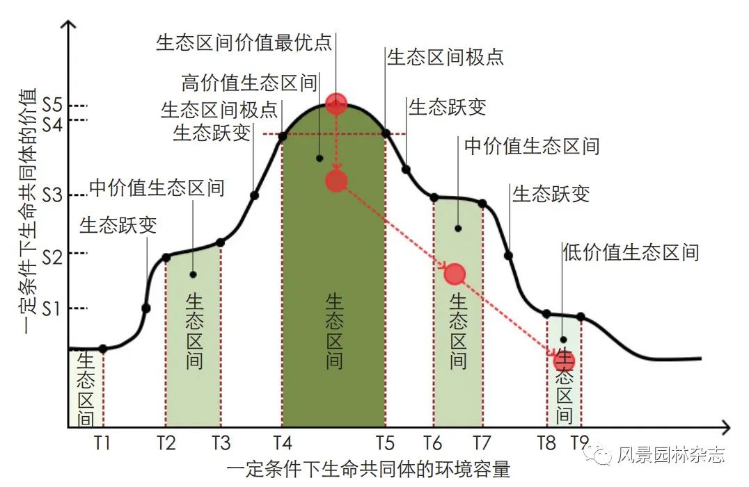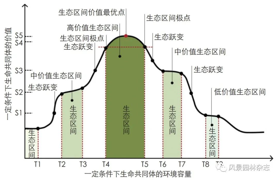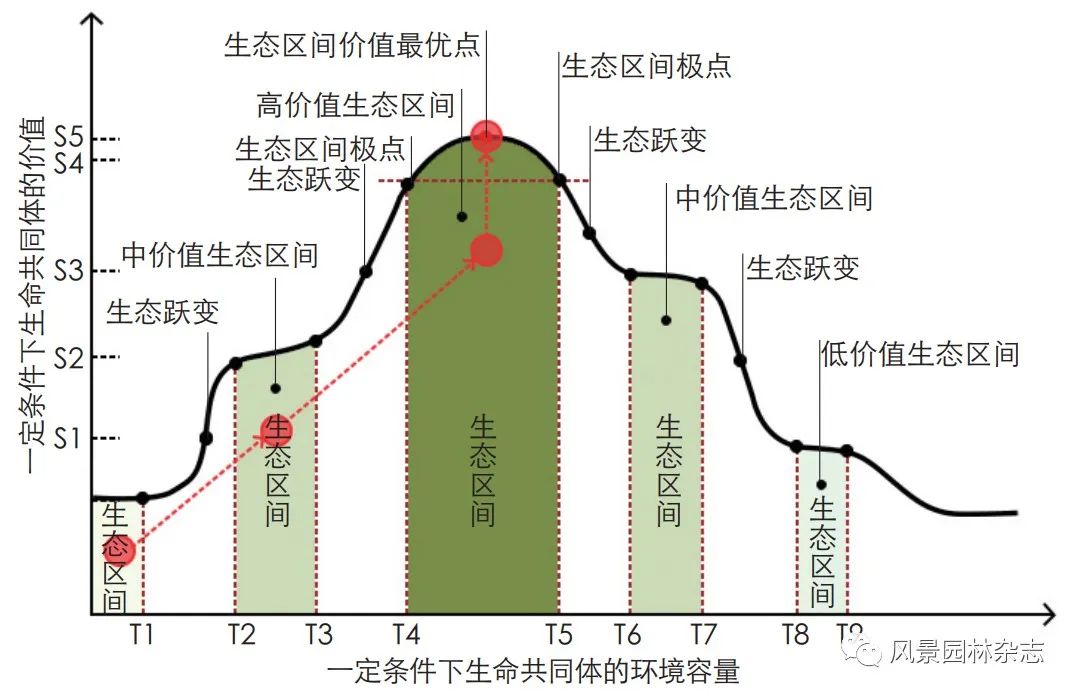 最优价值生命共同体理论是在习近平生态文明思想指导下,以生态学、风景园林学、系统科学为支撑,根据生命共同体的整体系统性、区域条件性、价值性、有限容量性、迁移性、可持续性六大特性,遵循生态系统的内在机理和演替规律,坚持节约优先、保护优先、自然恢复为主的方针,聚焦“生态”和“风景”,按照“维护区间(保护生态)、促进迁移(修复生态)、谋求最优(建设生态)”三步走,在高价值生态区间内,发挥设计对美学和意境追求的正向作用,优化生态资源配置,利用生态产业化、产业生态化路径,破解“绿水青山就是金山银山”高级多元方程式,谋求满足生物多样性需求和人民美好生活需要的最优状态。最优价值生命共同体理论为当前生态保护、修复与建设提供了一种具体的实践思路与明确的工作目标,也为生态规划与设计师探索更加系统的工作方法与技术奠定了理论基础,可指导不同区域、不同尺度生命共同体的保护、修复和建设工作。