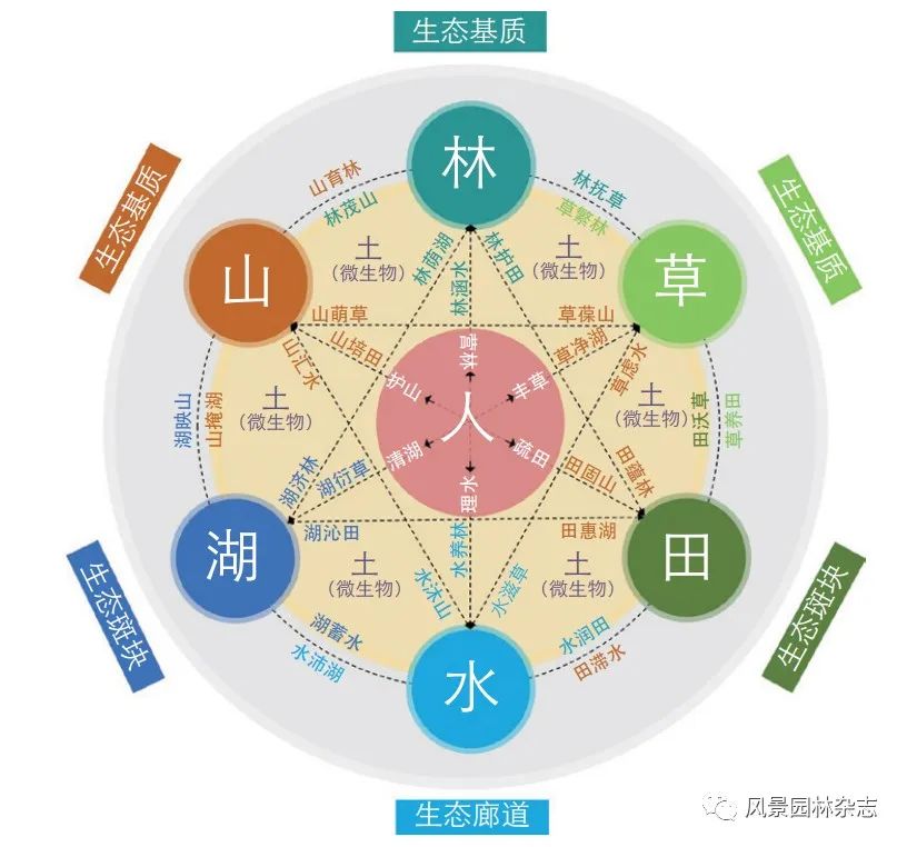 最优价值生命共同体理论立足于生命共同体建设,以生态学、风景园林学、系统学等学科的融合为基础,依据天人合一、道法自然的生态文明理念,基于生命共同体整体系统性、区域条件性、价值性、有限容量性、迁移性、可持续性六大特性的自然解决方案,抓住“水和土”生态本底要素,通过发挥设计对美学和意境追求的正向作用,对特定区域的生命共同体进行生态保护、生态修复和生态建设,促进其向高价值生态区间迁移,并在高价值生态区间内,谋求满足生物多样性需求和人民美好生活需要的最优价值点的理念、方法、路径、技术。