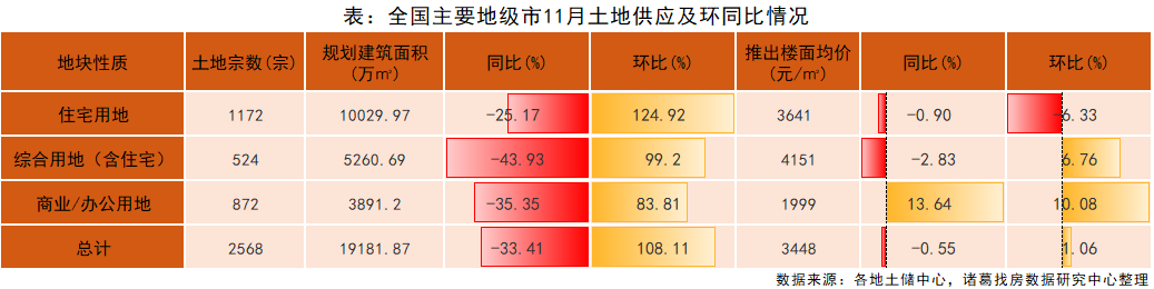 一、11月份土地市场供应环比翻倍,成交小幅下降