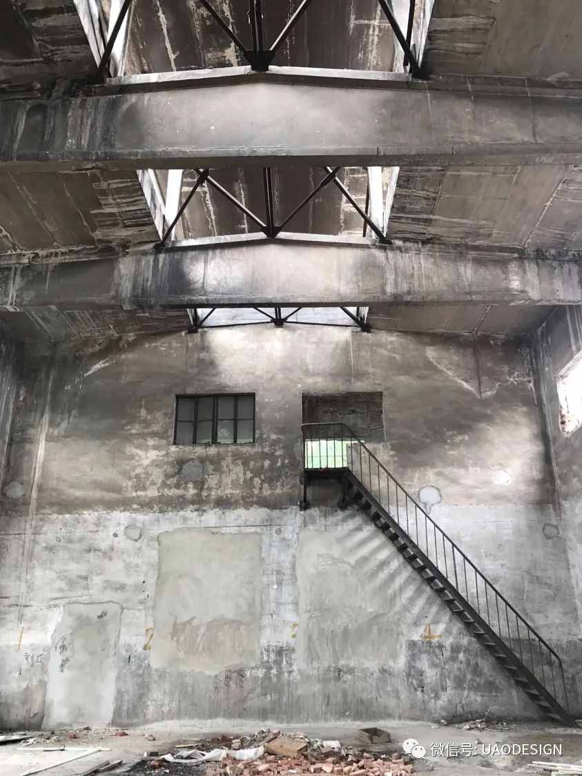 本项目是原粮油集团的1960年代的厂区,前身是猪鬃厂,1990S改为建材园区,最近几年荒废;项目由国内著名的擅长工业园区文创开发运营的上海红坊联合鄂旅投投资改造运营,上海水石负责规划设计,我们UAO负责园区的景观设计和核心建筑ADC艺术设计中心的建筑和室内设计。