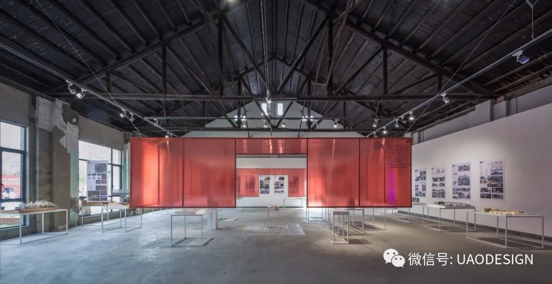 UAO在五个连排建筑的正中切开一个光轴:将中间两跨到三跨的屋顶打开,移除瓦屋面,保留屋顶桁架。屋顶打开后,光线进入建筑内部,自然地形成了一个序列交通空间,串联起两边的展厅,形成“鱼骨”状平面布局。