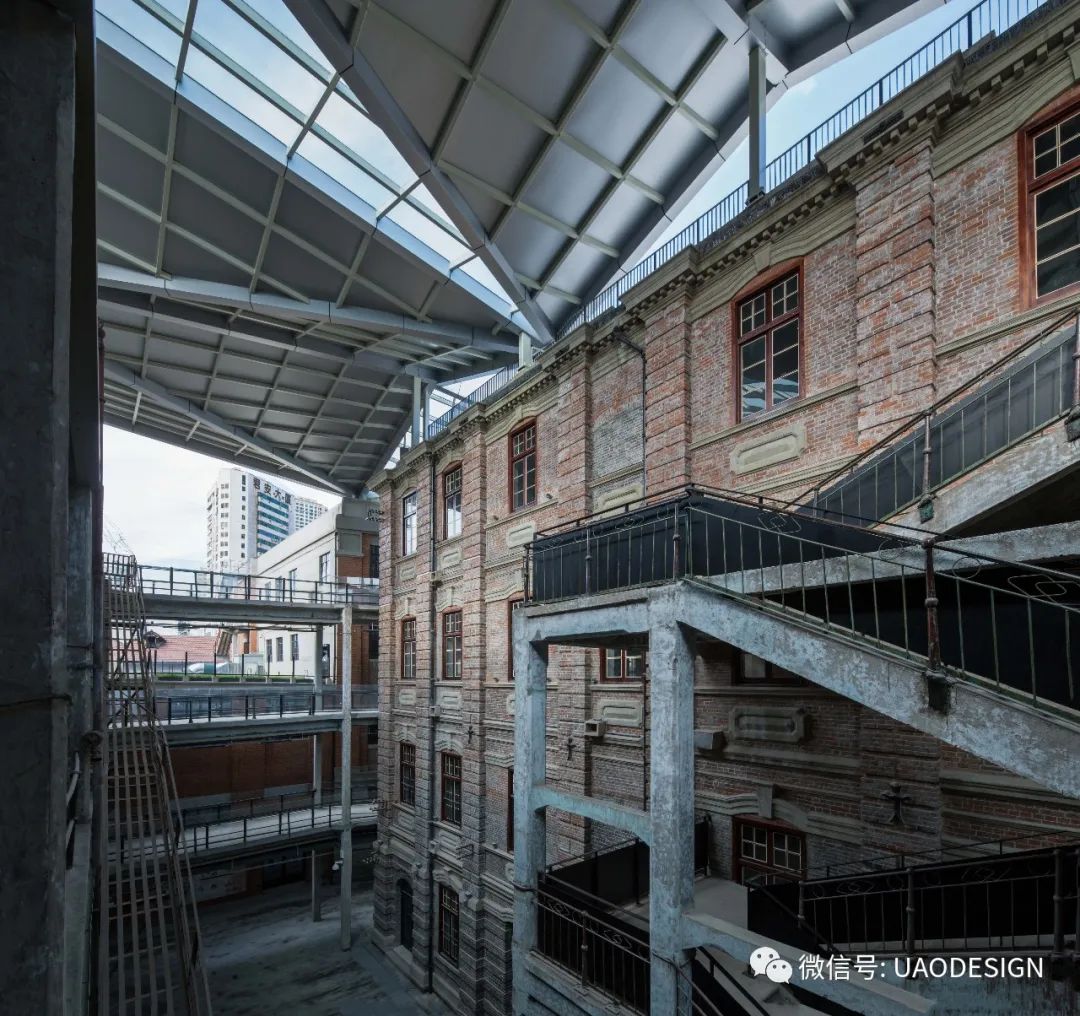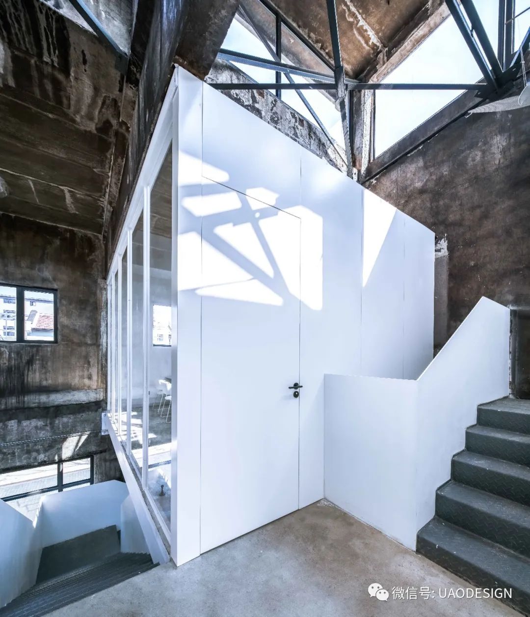 它采取了一种内部植入的更新模式,没有破坏原有建筑的外观和主体结构,强化了原有建筑的空间特质。它将原有破旧的老发电机房,改造成UAO的办公室,得到了历史工业建筑的功能再生。