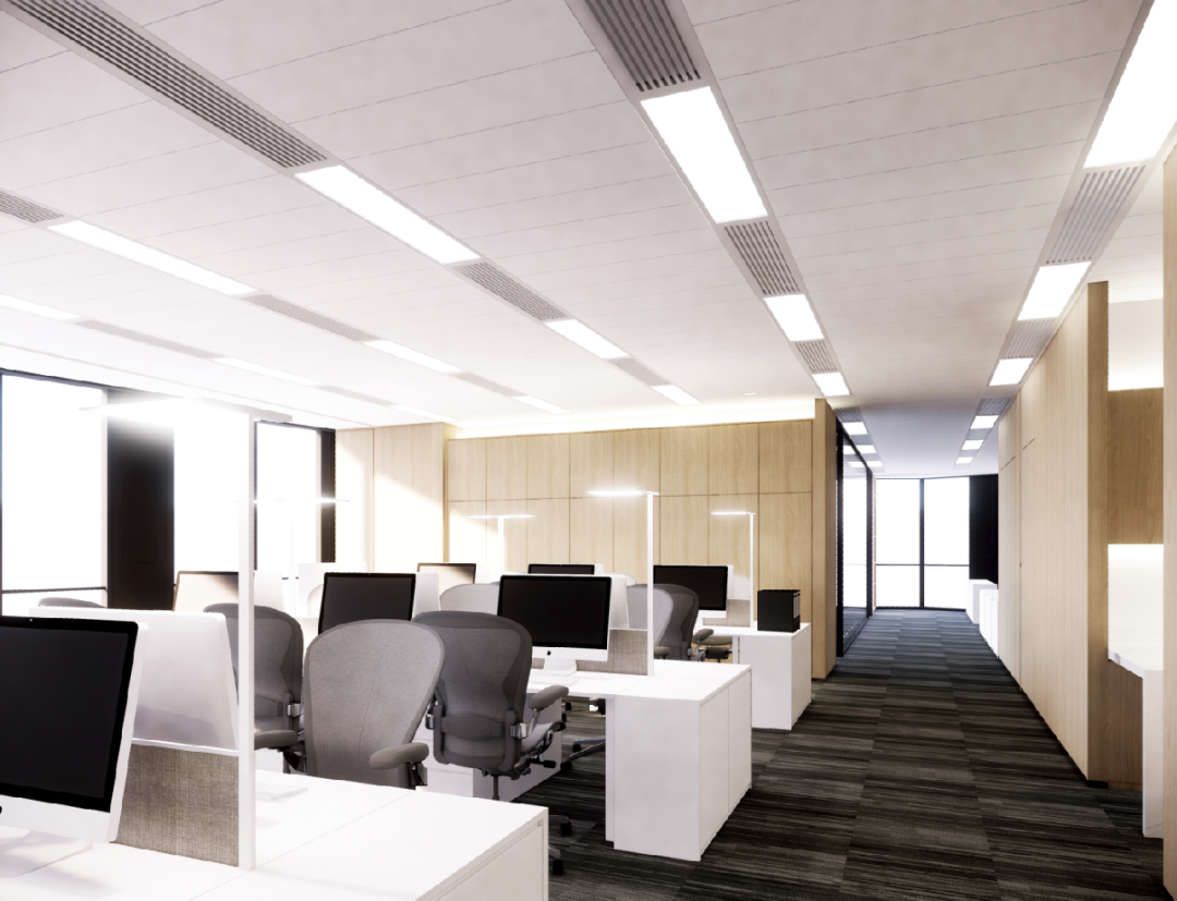 项目位于青岛市崂山区集商业购物、休闲、餐饮、办公于一体的商业综合体——国金中心5 号楼,主要用于总公司青岛总部办公人员办公及总部安排的会议、接待以及金石教育的线上开发使用。