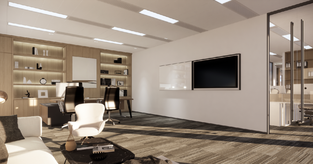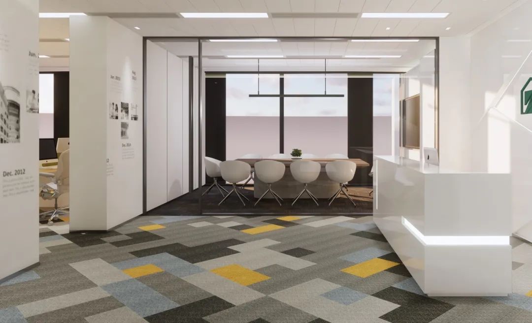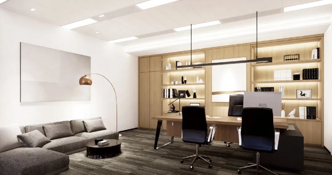 室内空间功能区域划分秉持了高效互通、功能交融、流线顺畅的设计原则,设置了开敞式的公共办公区域、系列会议室、财务办公区、总裁办公区、总裁办公室、董事长办公室等空间,各空间均采用了通透且和谐、统一的色调,没有繁琐的设计和过多的装饰,既减去办公中的压抑感,也让空间渗透出一种积极向上的生命力。