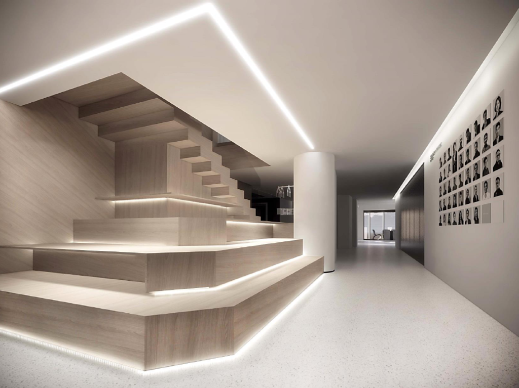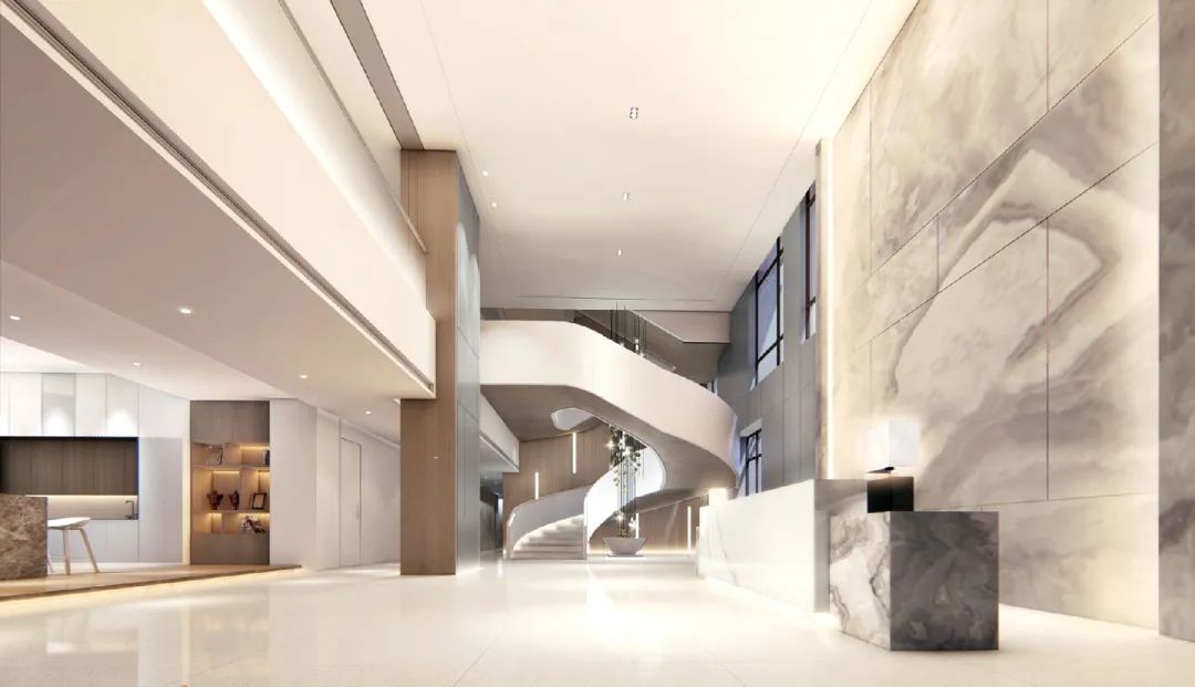 本案是泰盛恒地产集团旗下临沂休格兰花园办公楼的室内设计,塑造一个纯净宽广、挥洒灵感的办公空间是设计灵感的原点。