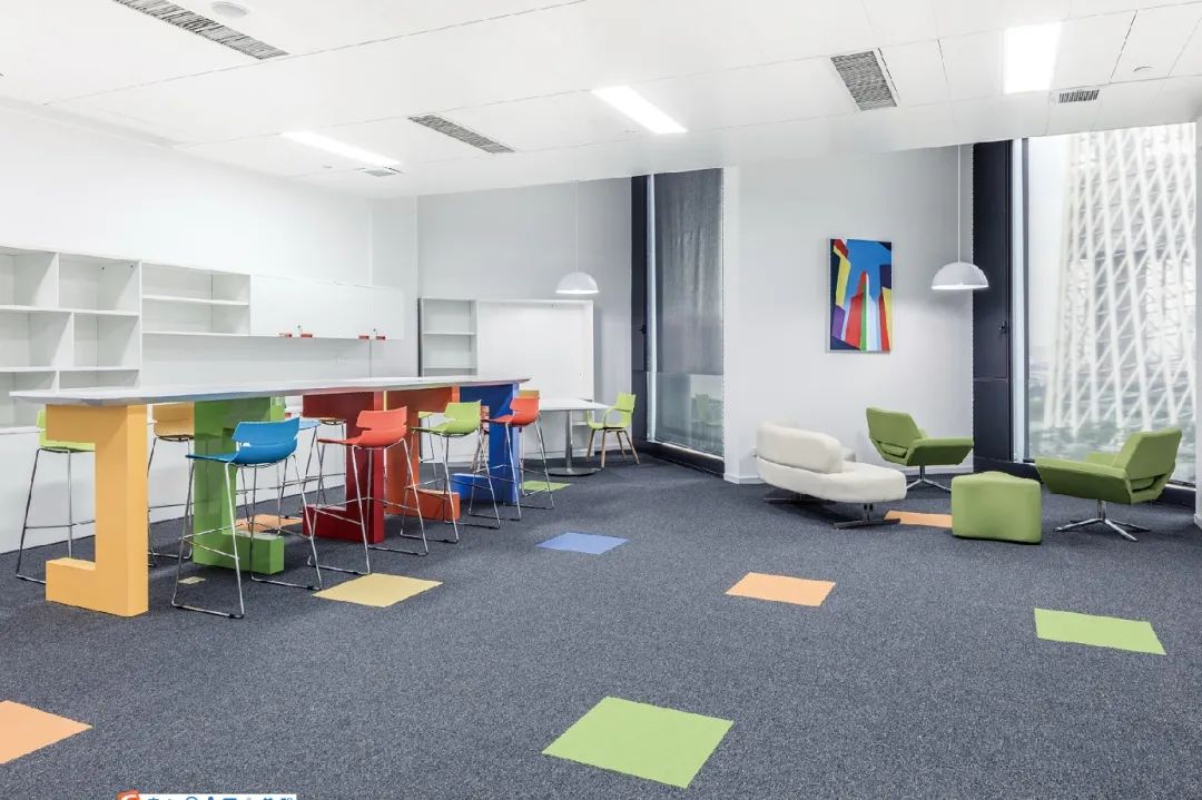 整体空间运用了品牌标志性颜色——绿色和橙色,并以多元、灵活的配色手法为空间带来充满活力、积极向上的氛围,使空间充盈着丰富的创造力。