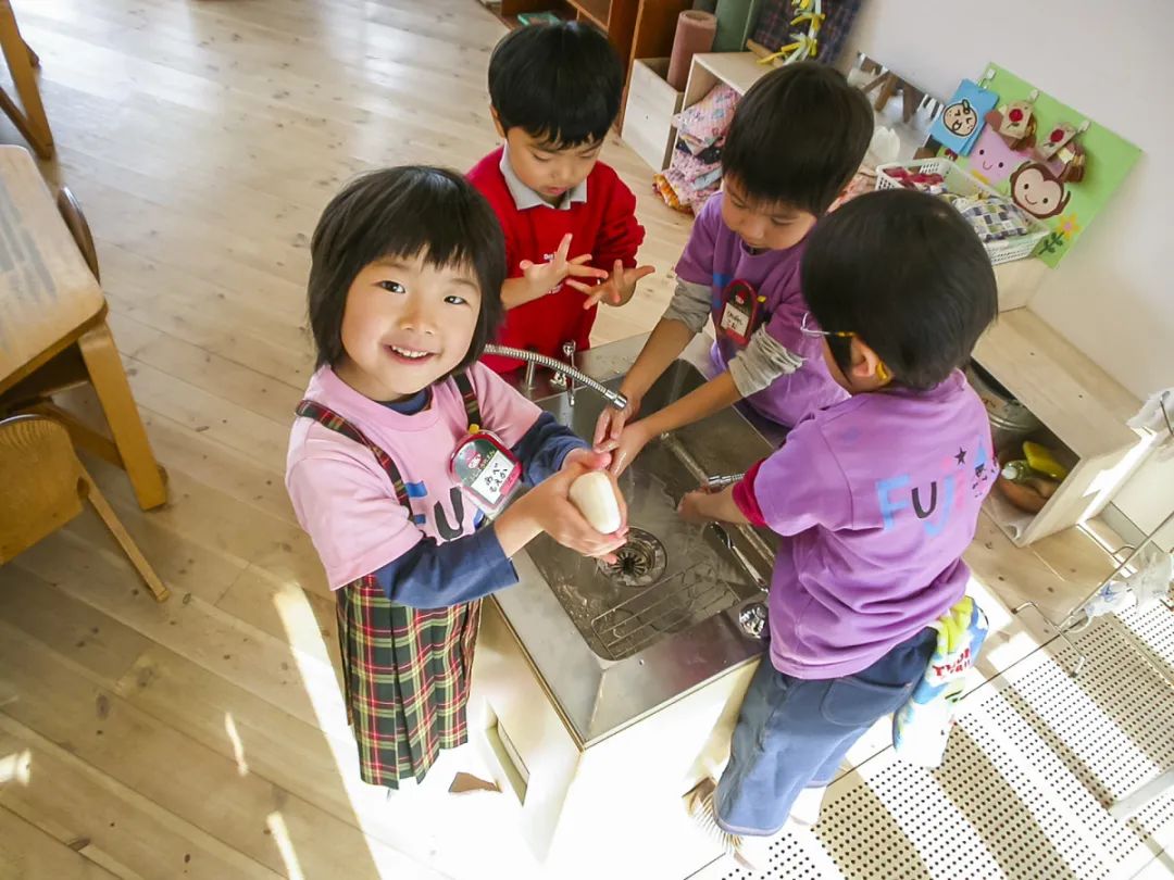 有一天,科学杂志的人来,那个记者说富士幼儿园太吵了,怎么让孩子们保持安静呢,这其实很简单,我们不会大喊,相反用非常小的声音告诉孩子们有件事要跟他们说,这样孩子们都想听,就会顺理成章变得非常安静,我们只要等他们静下来就好了。