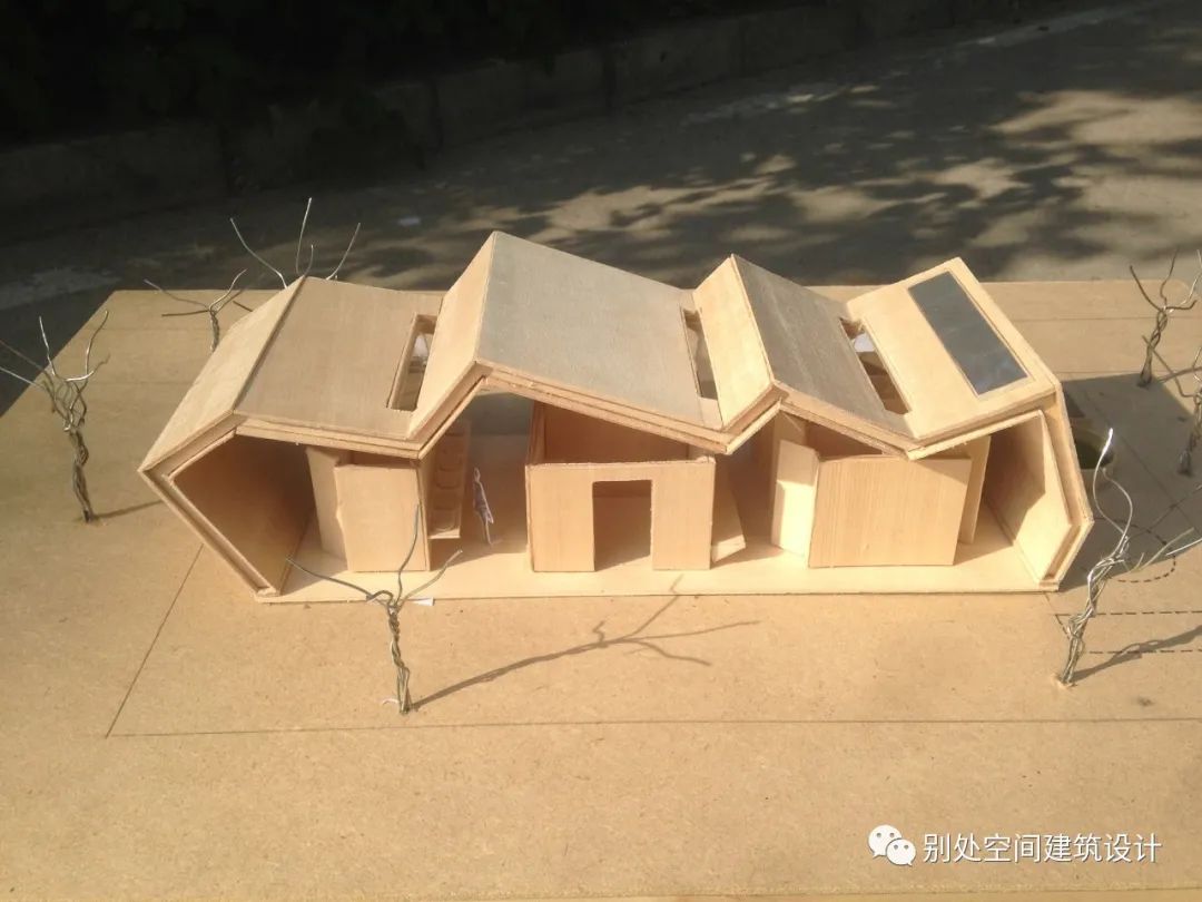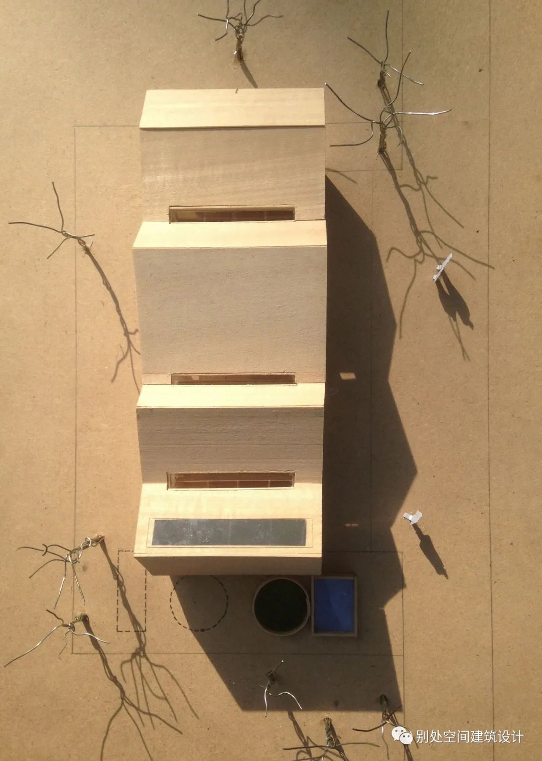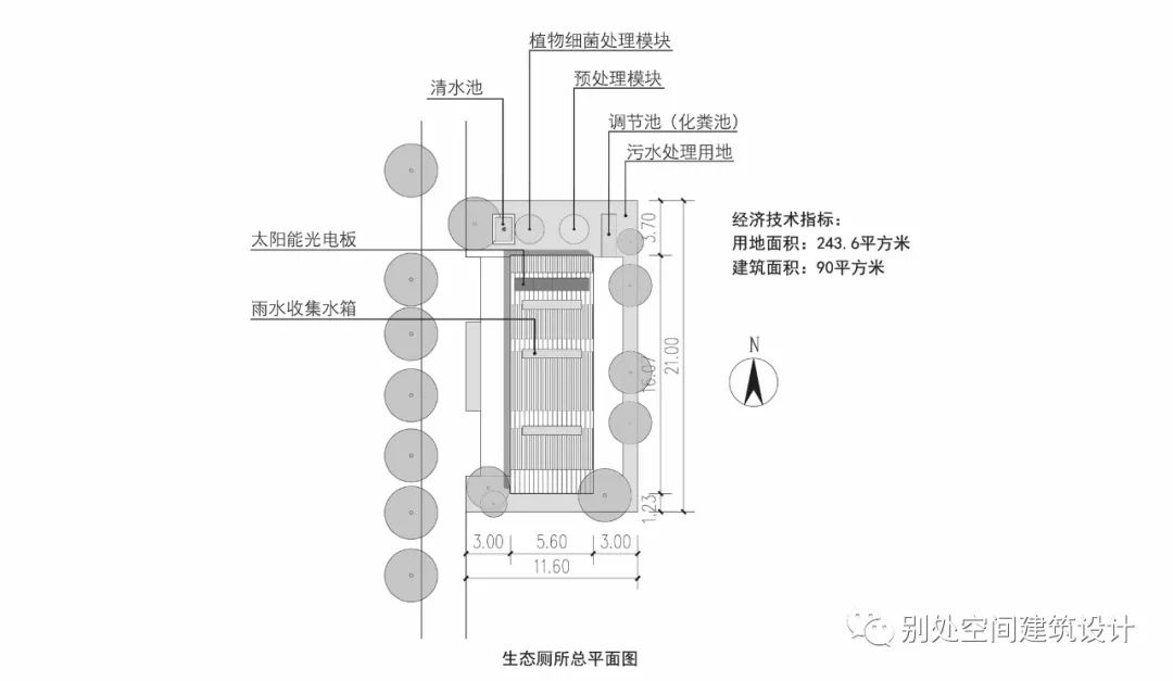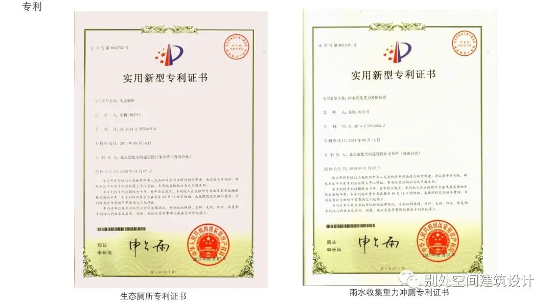 倾斜的屋顶,收集雨水。雨水经过过滤槽后,汇集到屋顶下部的雨水收集水箱。利用水箱与洁具高差产生的势能冲洗厕所。所有厕所用水经过净化后得到的干净水再供厕所使用,形成水资源的循环。别处空间的这项技术获得国家实用新型专利。