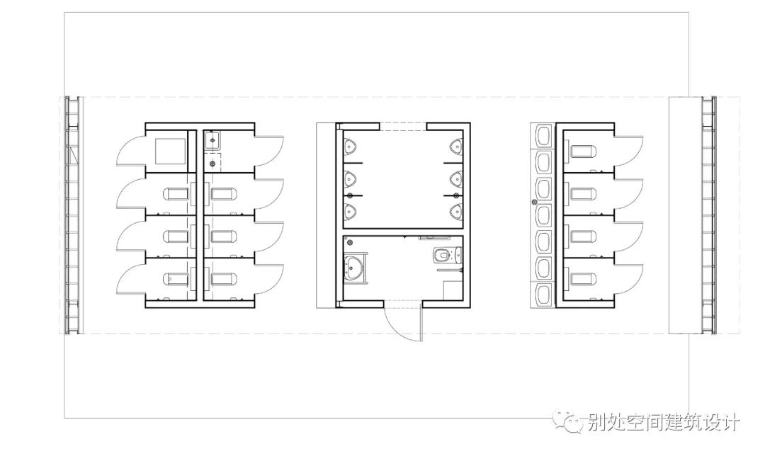 基本单元模块化,适应不同的规模。男女厕位通用,提高如厕效率,避免诸如“占领男厕所”事件的尴尬。单独设置了周转率高的男子小便区。