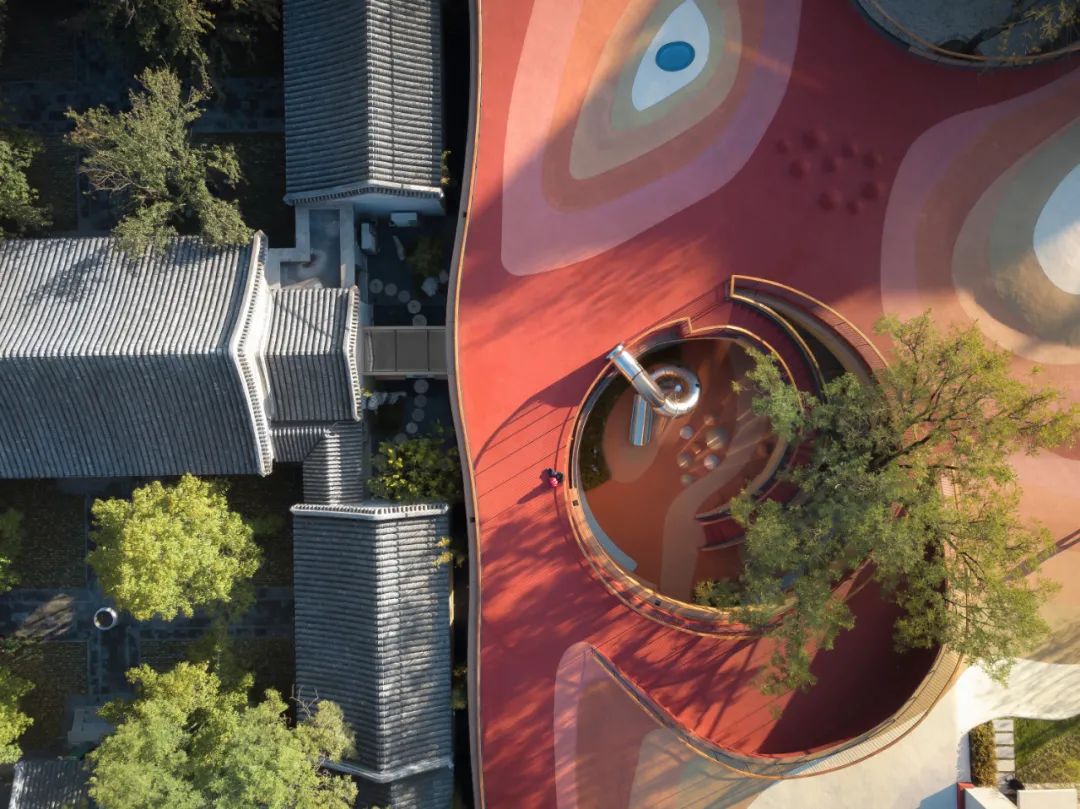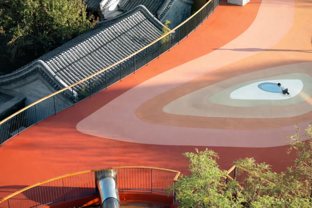 “三天不打,上房揭瓦。”屋顶地形连绵起伏,吸引孩子们乐于在此奔跑、互动。面对眼前的“火星”、四合院、老树、天空,孩子们在这里“上天下地”,启发他们思考和追逐不同的可能性。