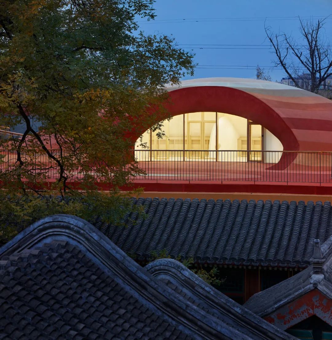 在老北京,除了紫禁城的红墙黄瓦,胡同巷里几乎尽是青砖灰瓦。在这里,二层屋顶平台色彩斑斓,像是火星表面,颜色鲜艳、温暖,仿佛充满了“魔力”。MAD尝试带着人们跳出北京、甚至地球的背景,从另一个时空客观观看、想象眼前的历史长河。