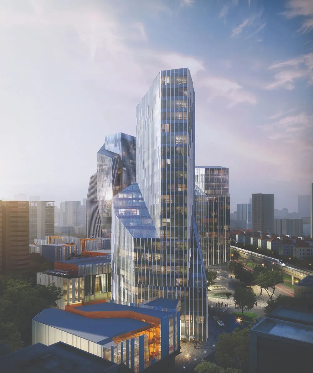 项目集商业、文化、商务办公于一体,毗邻10号线虹桥路地铁站,周边汇聚上海城市雕塑艺术中心、红坊创意园等文创地标。设计以山景为蓝本,营造出集悬崖峭壁、蜿蜒裂谷于一体的活力街景,颠覆传统办公环境,在立体陡峭的山峰之下,塑造出多个形状独异的科技感办公空间,一举斩获MIPIM ASIA大奖 、亚太房地产大奖等众多国际知名奖项。