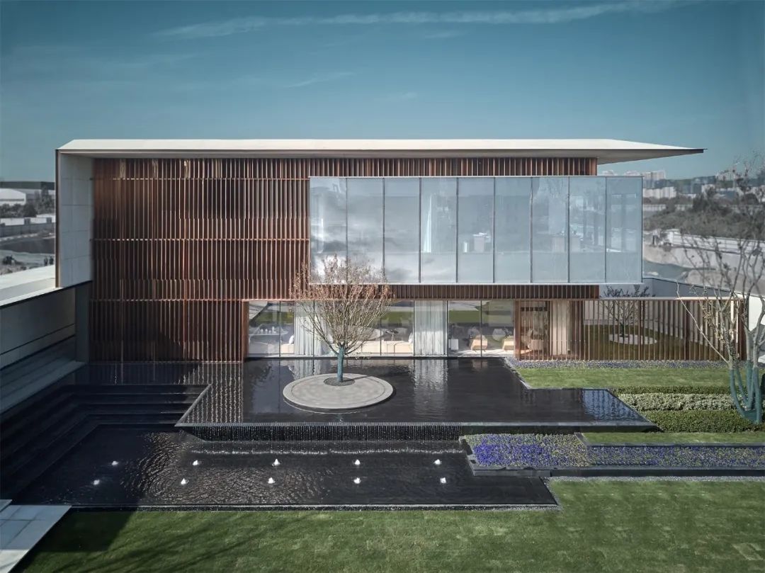 从城市道路而来,穿过幽静的景观小道,通透的建筑飘浮于平静的水面之上,嘈杂的城市界面从此被切割开,开阔的空间和视觉体验营造年轻化、个性化的生活场景。