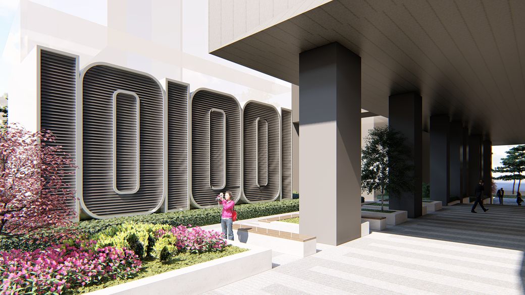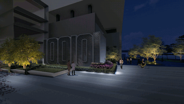 我的风口是场地的构筑物,也是景观设计的一部分,设计元素与立面统一,延续了0、1设计理念,使建筑设计更加完整。