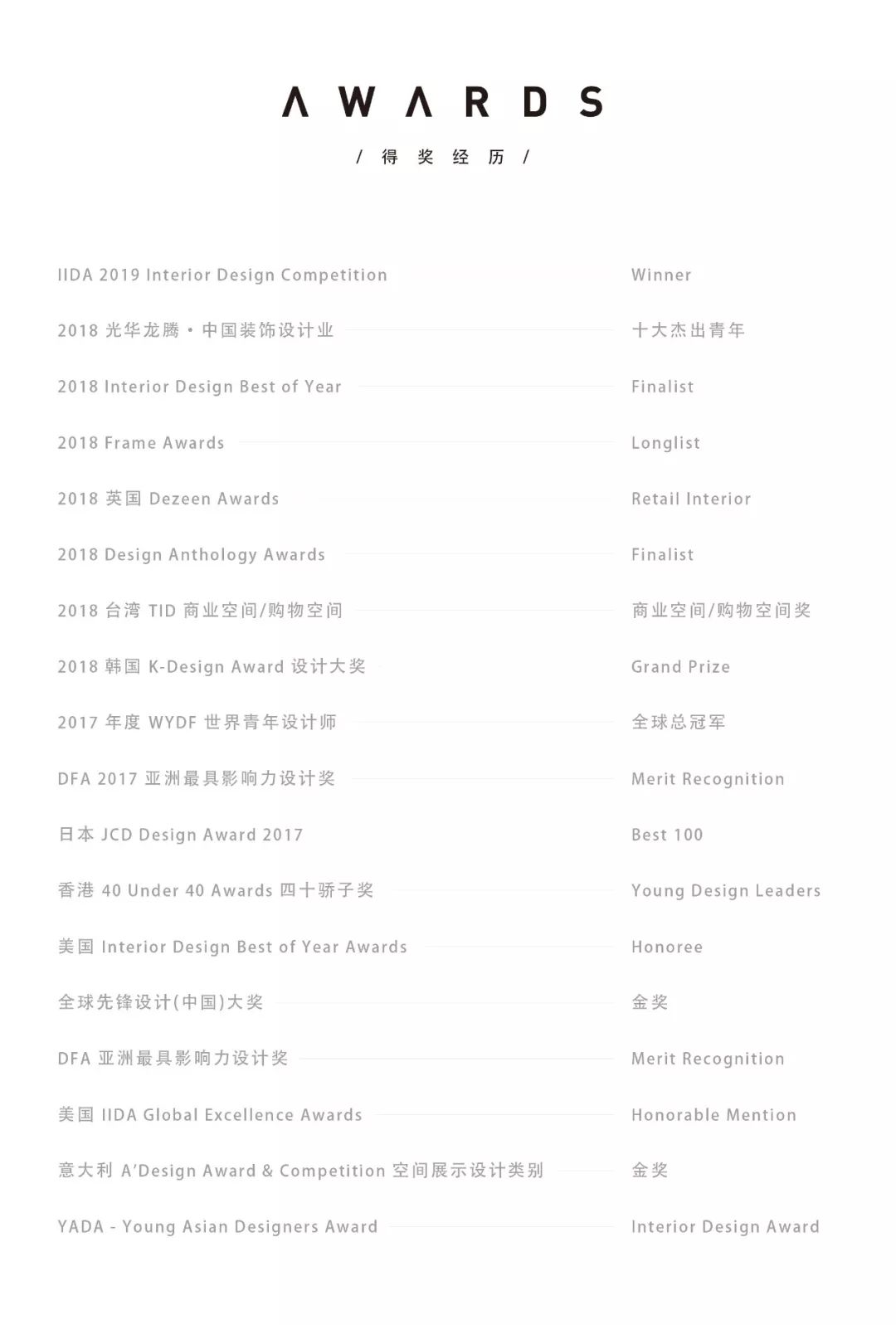陈峻佳(Kyle Chan),峻佳设计公司创始人,WYDF世界青年设计师全球总冠军,光华龙腾·中国装饰设计业十大杰出青年,香港设计新势力代表人物,思度建筑及室内设计合伙人及亚太区设计总监,曾获“亚太区年轻设计师大奖”室内设计金奖,美国著名室内设计杂志《Interior Design》Best of Year Awards等。擅长跨界创新商业设计、复合业态规划整合,以及多维叠加场景风格塑造运用场景化与体验式手法,在设计中主张[别用眼睛看设计-Design beyond eyes],强调为客户创造新生的商业价值,并传递出独具文化意蕴的生活方式与品牌内涵。在商业设计中重视城市、品牌、空间与人的复合共生,设计领域包括商业、教育、养老、办公、地产、文化、公共服务空间等。