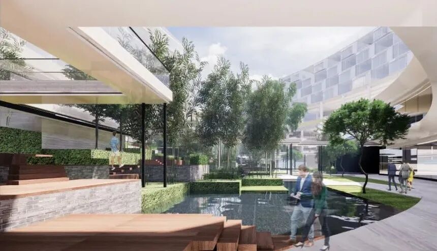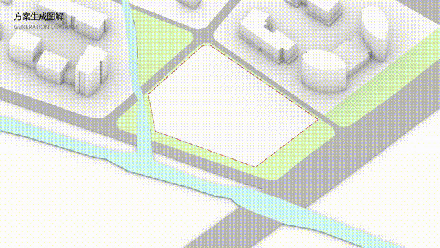 本设计尊重园区已形成的空间结构和城市形态,考虑已有的城市界面。以两个舒展大气的圆弧笔触作为建筑主体,既退让了两个街角的城市缓冲空间,又围合出一个中央景观庭院,兼顾与周边建筑群体的连通性。以飘逸灵动的姿态填补园区的最后一块拼图。