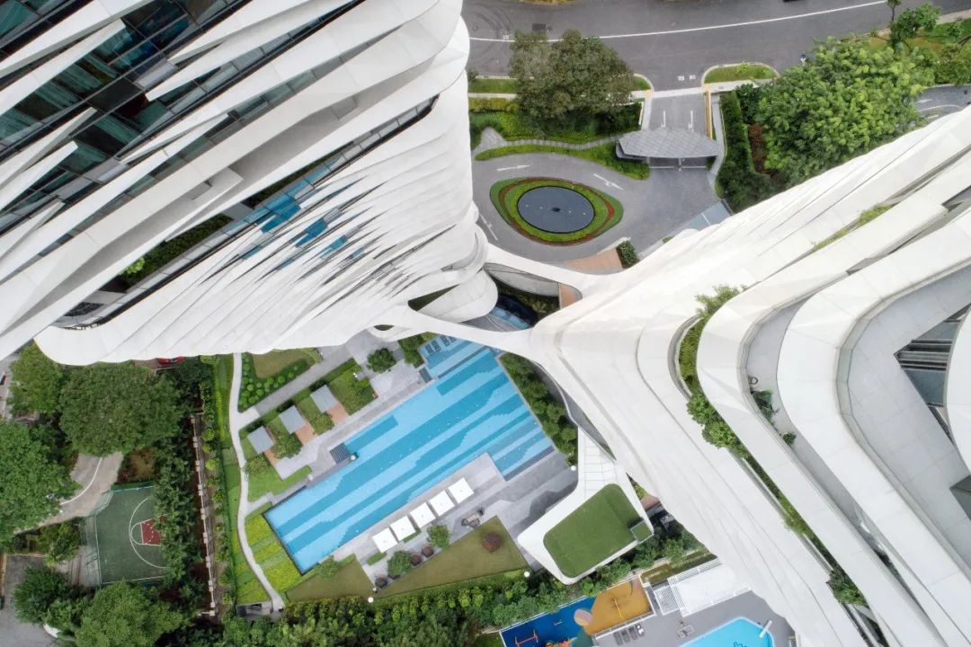 项目的一个主要体现在每座塔楼上嵌入的三 个空中花园,在多个楼层上为住户提供亲近自然的开放式平台。
