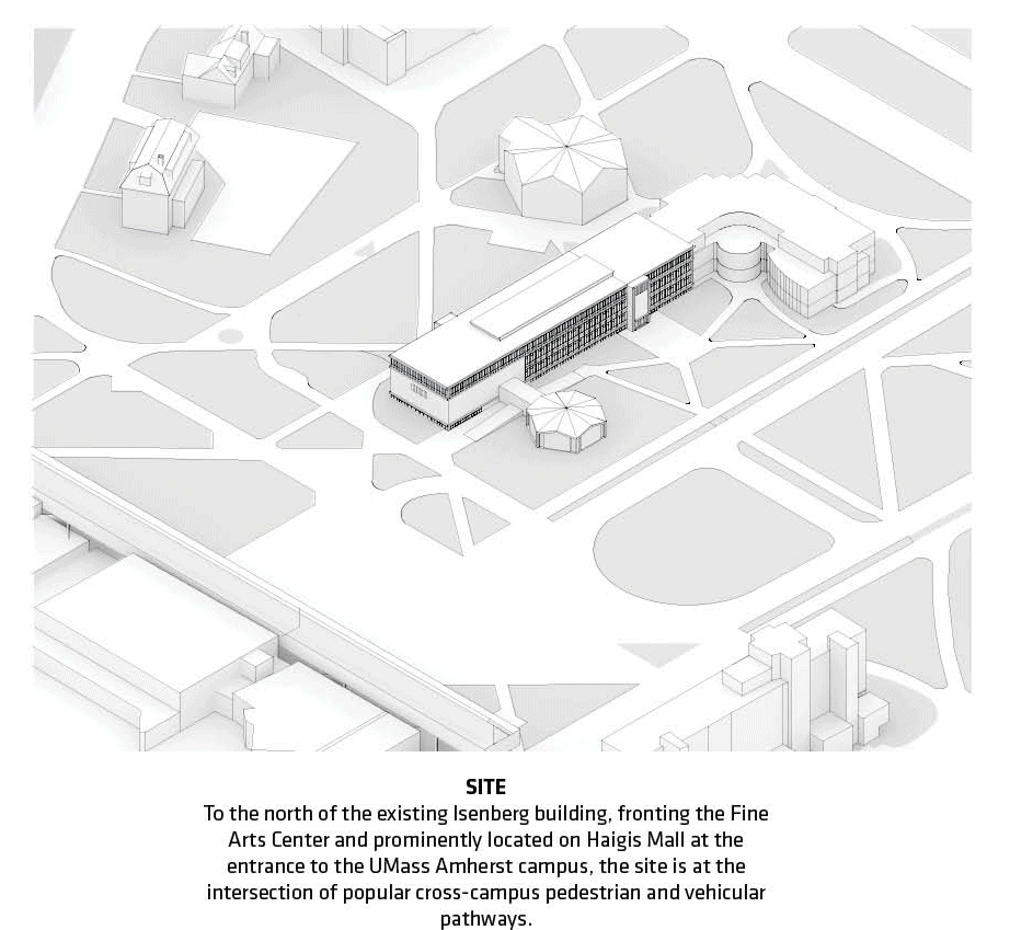 The Business Innovation Hub directly extends the school’s existing 1964 building from the north and east sides in a wide circular loop, linking back on the upper floors to maintain connectivity. The loop consolidates Isenberg’s faculty and staff under one roof, creating a singular place of arrival and a strong visual identity for the entire Isenberg School of Management.