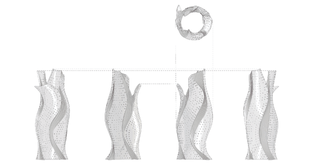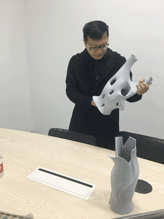 设计师不希望完全复制古物,而是将现代感加诸于壶身之上,造型奇异却不失古趣。模拟壶身摇晃的状态,使人视觉模糊,无法清楚对焦,正如酒宴上似醒或醉的文人雅士所见。