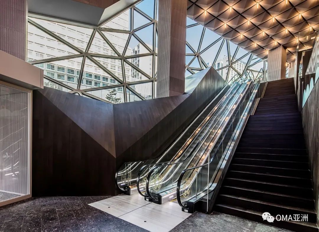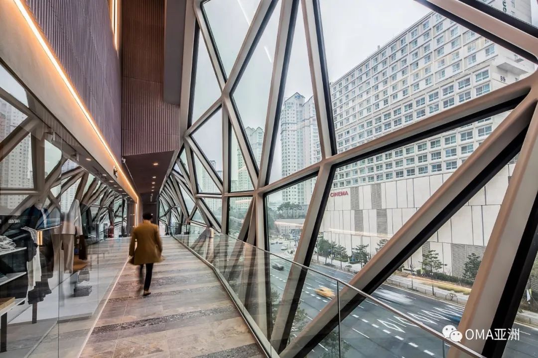 OMA 协理金刹迪表示:“这个公共环路将通常隐藏在商业体建筑内的顾客购物活动变为可见的、有形的,展露予外部城市,让 Galleria 与光教城镇生活紧密联系在一起。”