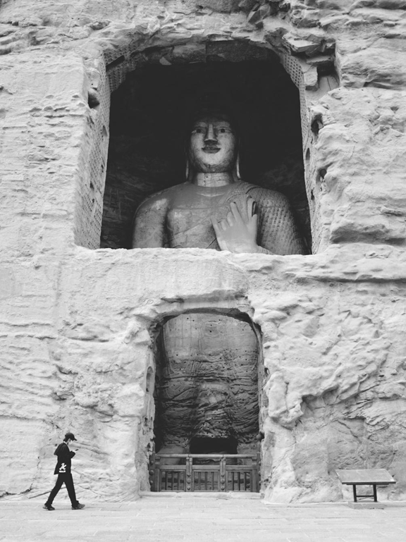 洞窟里庄严且略带微笑的照像被飞起舞动的线勾画和围绕着,顶部侧面的光洒落下来,神情在飞舞的线条中飞天,人和神都应了天,也应了北魏之名,美好而伟大,中原之北。