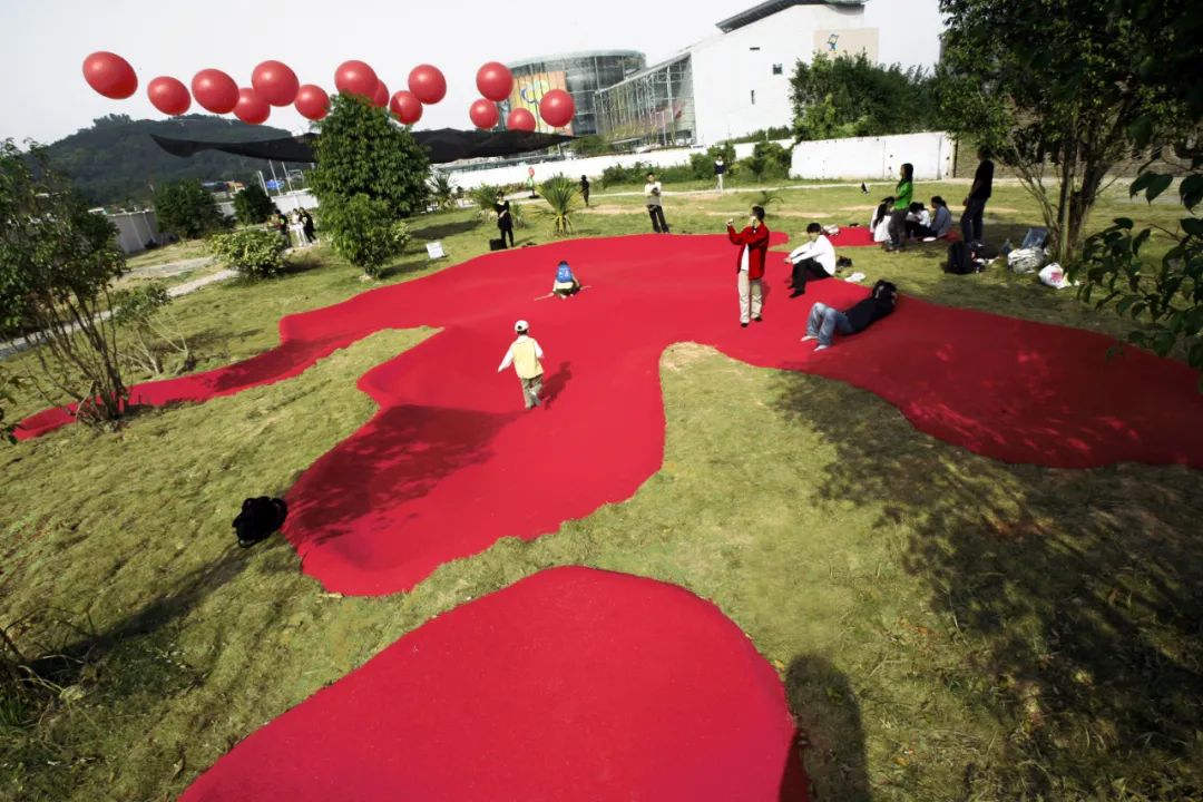 2009年,深港双城双年展上,MAD在深圳市民广场中央设计了两个脚印。总共120平米见方的下沉空间,表面是红色的EPDM弹性橡胶材料。两个脚印像是史前生物—恐龙曾经在这里进行过破坏,又像是地外文明,曾在这里探访。