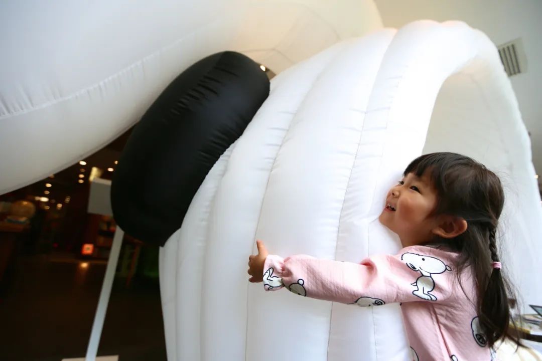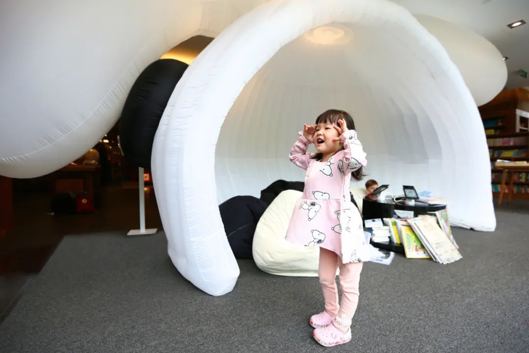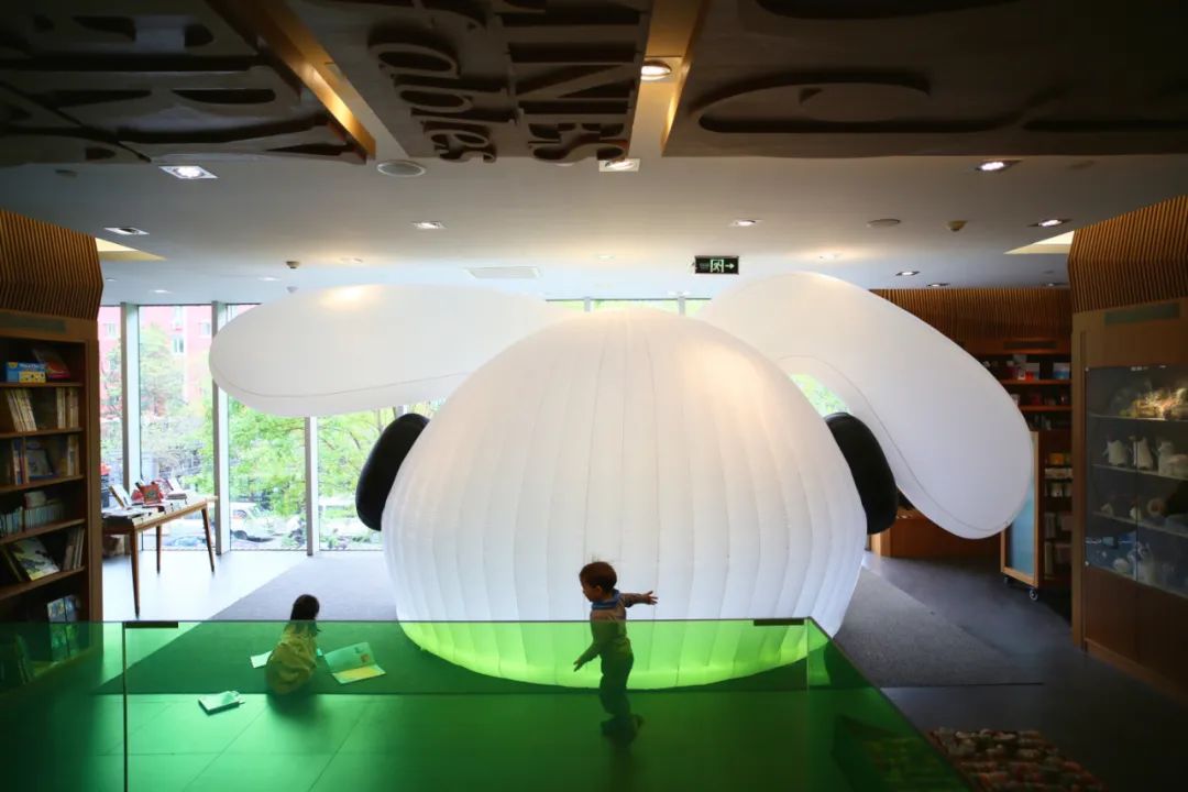 兔子是充气式的塑料材质,轻薄、便于移动,里面有地毯和懒人沙发。它可以是一个阅读区域,也可以是一个游戏空间,在这里或躺或卧,没有特别的规定和限制,孩子们能够在这里充分享受到自由的乐趣。