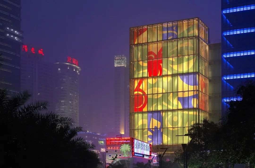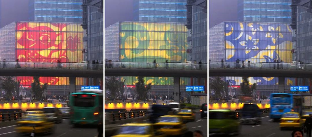嘉年华大厦位于中国重庆的市中心,一改沉闷重复的传统建筑外立面,创新醒目的图像设计开创了公共地标的新类型:重庆嘉年华中心 © SOM