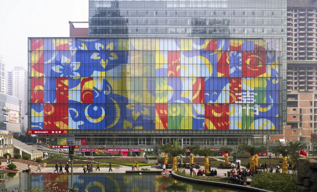 设计师通过别出心裁地运用普通公告牌技术,将玻璃结构转变成充满动感的建筑:重庆嘉年华大厦 © SOM
