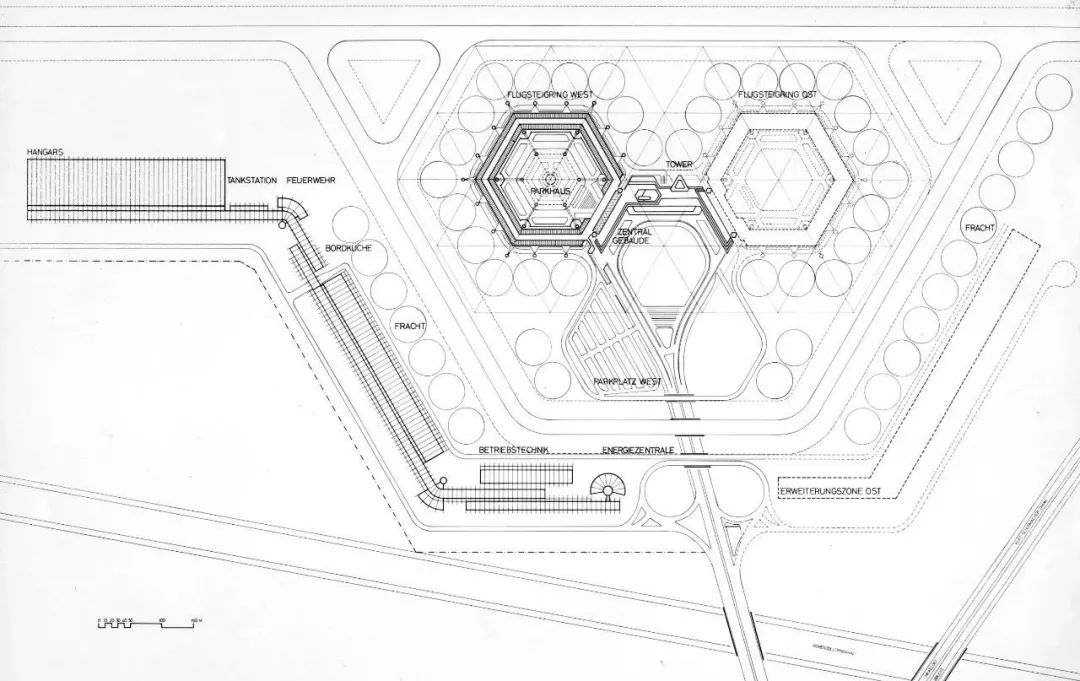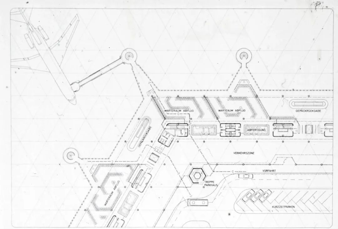 故事从1965年说起:曼哈德·冯·格康,福尔克温·玛格和克劳斯·尼克尔斯这三位刚刚走出校园的年轻建筑师一举赢下柏林-泰格尔机场的国际设计竞赛。当时的他们虽然还未有过建成作品,但是学生时期已在其他事务所积累了丰富的建筑竞赛获胜经验,这一背景正是他们在国际竞赛中脱颖而出拿下首都机场设计委托的原因。