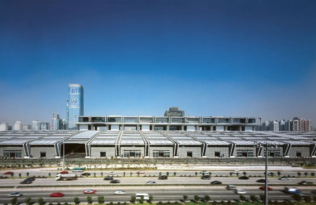 但谁都没有想到,两年后的2001年,深圳会展中心由于易址而重新进行举行国际方案竞赛。玛格教授再度出征,和汉堡的合伙人格茨、项目合伙人西蒙斯在局促的基地上构思出一个全部单层展厅的方案,不仅解决了会展的功能要求,同时通过尺度、比例、屋面细部的推敲,形成了一个福田中心区中轴线完满的南结点。