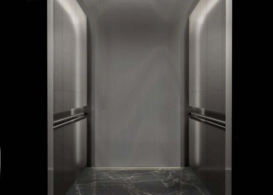 这一设计主题延伸到了电梯轿厢内部不锈钢墙面所刻画的卷浪形态。