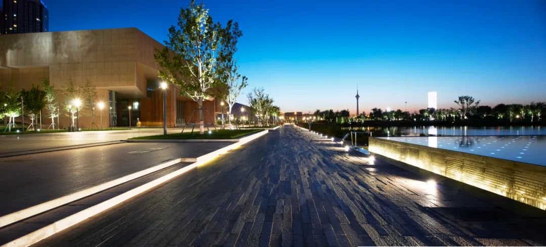 当时阿拓拉斯负责图书馆、美术馆,还有生态岛等的一系列景观设计。美术馆的结构其实非常简单,一个小路口,一个小广场,一个小院子,前面有一个大的水面。当时我们的设计师觉得美术馆的艺术展品,比如雕塑、艺术装置等等,除了在室内展示之外,还可以在室外展示,比如在广场上的雕塑展示是不是也可以放在草地里?后来甚至考虑到放在水面上,应该也有一些和水呼应的艺术作品,于是我们在入口广场提了一个浅水面的建议,可以在上面配合水面倒影,展示艺术雕塑,虽然当时也不知道未来会有什么作品能够展示,但既然是美术馆,就想赋予它更多的可能性。项目建成后,甲方选了一个大C型的艺术雕塑,放在我们设计的水面上,效果非常好,后来很多市民去玩的时候都会拍照,去网上搜一搜会有很多照片。