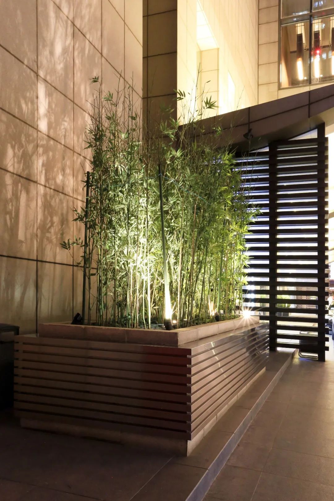 但随着这么多年的运作以后,银泰的位置正好在CBD的中间,里面又有柏悦酒店,会有很多的明星,或者活动嘉宾来这个酒店,穿着高跟鞋的女士走这种路,有时就会觉得很不舒服也很不方便。另外最初设计的时候,地铁等各方面的协调都还没到位,所以这个五星级酒店的门口位置空荡荡的,什么都没有,会让人觉得不太像一个五星级酒店的入口。