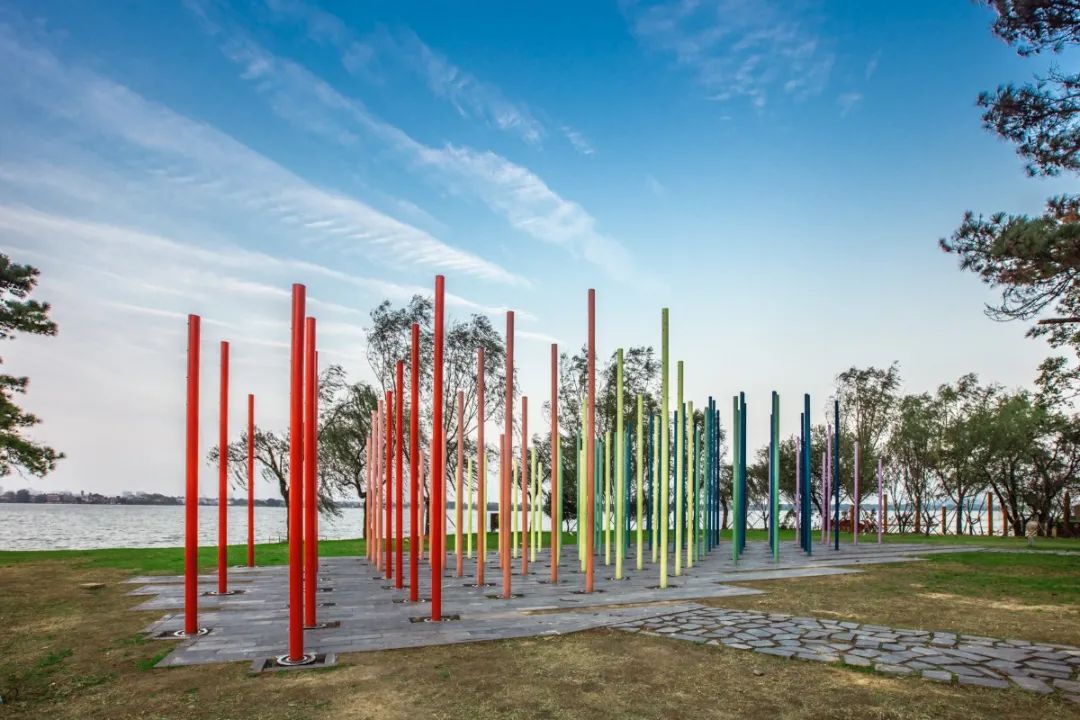 民众们可能会比较关注雕像,但我们作为设计师来讲,当时只有一个想法,就是觉得美术馆的作品不能只是仅在室内的展示,不能只是普普通通的广场上的展示,于是就有了这个水面上的展示,呈现了这样的画面,造就了这样一个“网红打卡”地。
