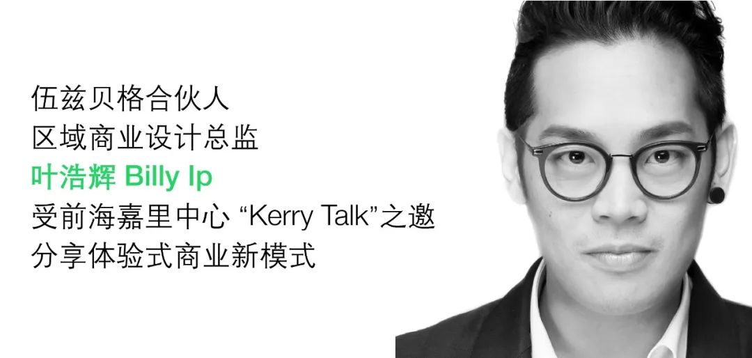 4 月 22 日,伍兹贝格合伙人、区域商业设计总监 叶浩辉 Billy Ip 应前海嘉里中心之邀,做客 “Kerry Talk”。叶浩辉先生在访谈中重点分享了未来的商业空间设计如何实现消费体验的提升,满足新生代人群的需求,从而实现体验式的商业场景营造。