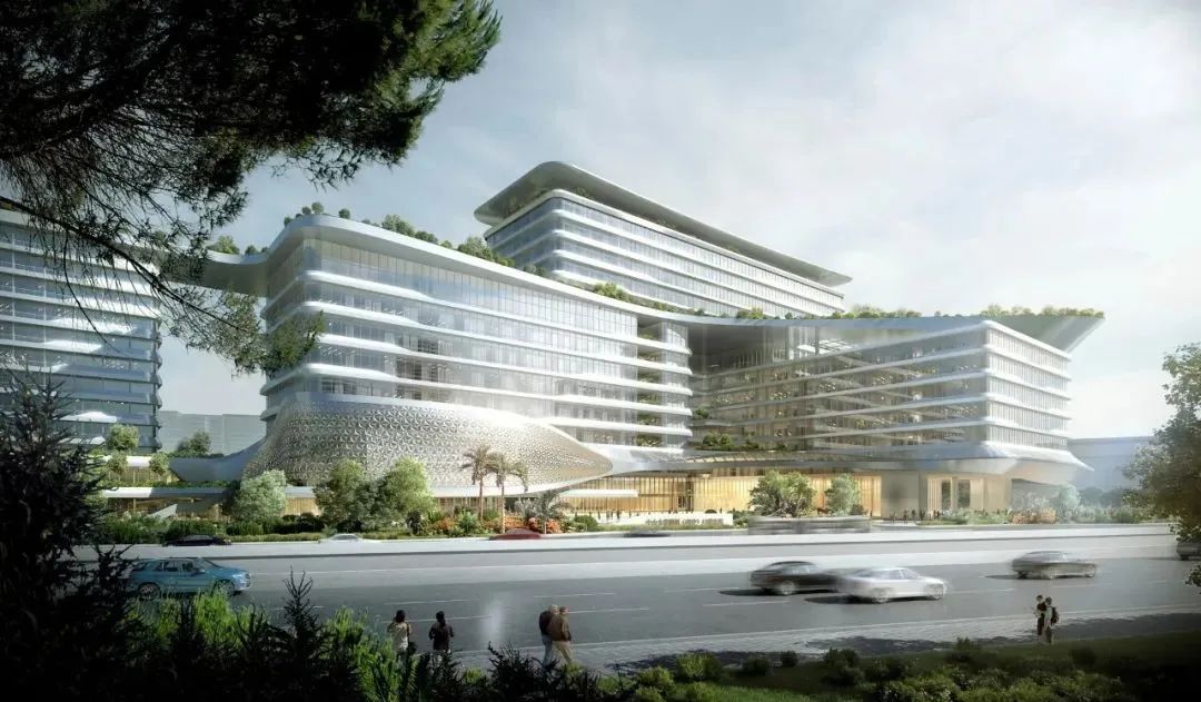 设计团队融合南沙大湾区的地域特色,设计理念以“海纳百川,有容乃大”为概念设计基底,通过对场地、功能分区、交通流线、建筑形态、可持续发展的等与城市呼应的一系列解决方案,形成基于城市节奏自然生长的城市界面,打造出科技与智慧医疗汇聚的“智汇方舟”。
