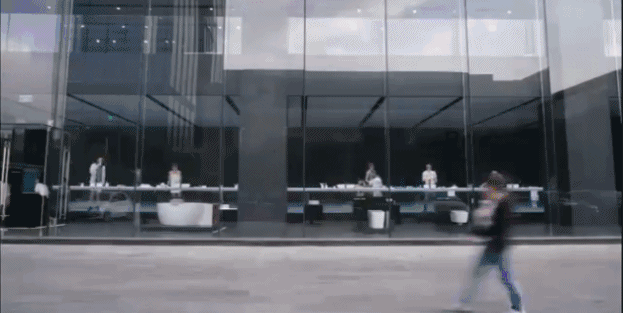 室内上下二层的建筑内墙成了城市的主立面——LED幕墙在两层空间里互相连接,成了一道关于光、影像、城市、街道与人互动的风景。此时,穿越与停留在城市里的人们,成为了一个个剪影,与艺术廊内LED幕变化的影像叠在一起,不分内外,不分你我,相得益彰。