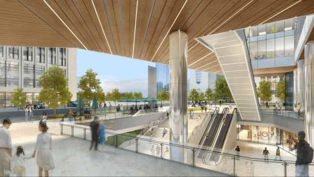 裙房上布置了一系列公共和娱乐业态:零售、餐饮、健身中心、会议中心和共享办公,激发整个广场的活力。