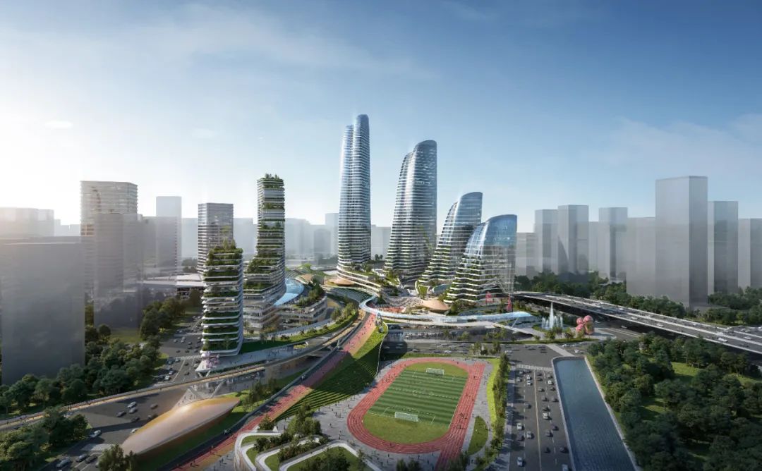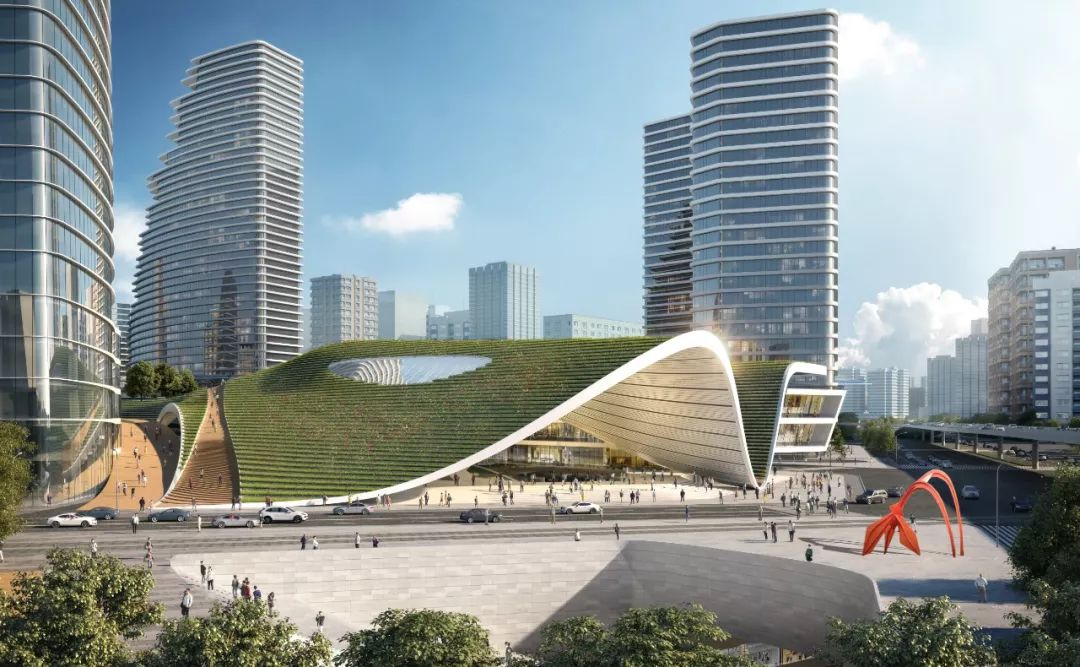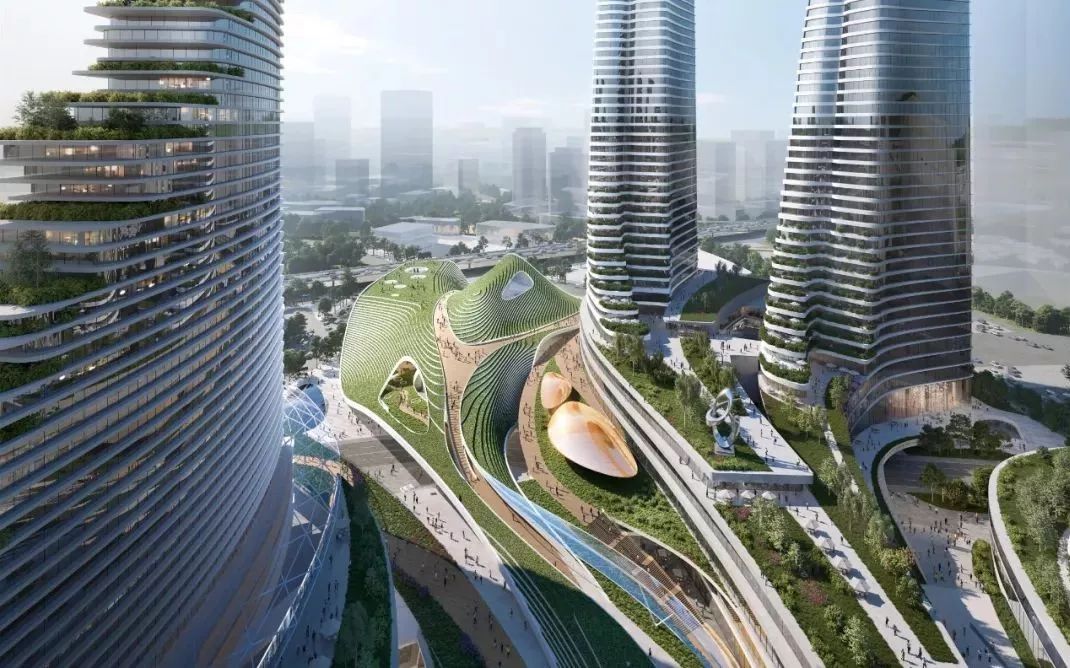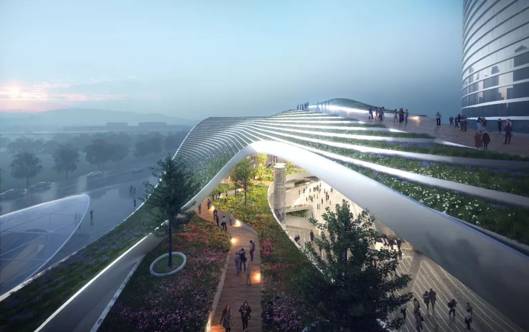 伍兹贝格基于海绵城市、花园城市、森林城市、人文城市的发展理念,以地景建筑设计手法,创造出城中有山,山水相依的生态建筑群落,呈现出功能载体向生活载体转型的新一代“聚合城市枢纽”。
