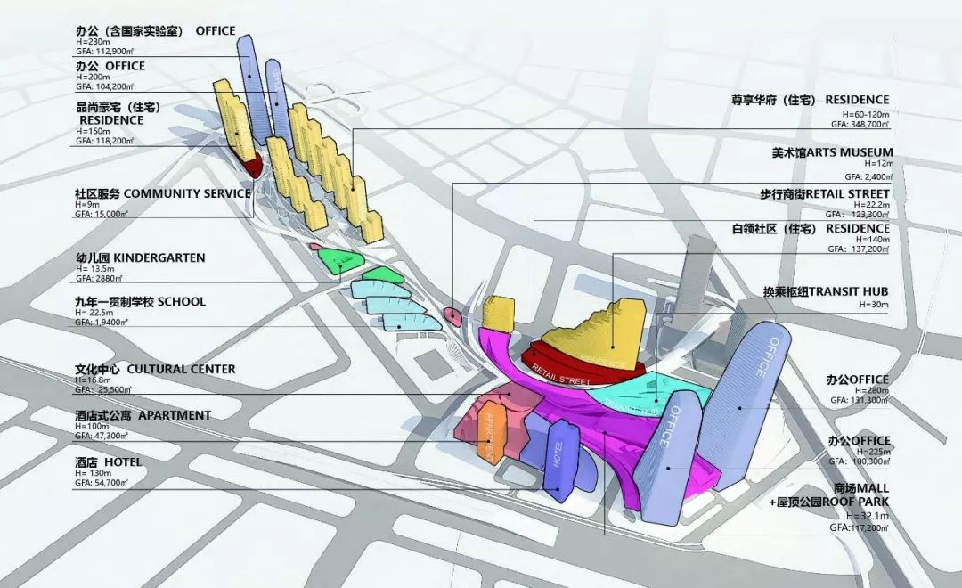 以山为心、水为灵、城为体、石为魂作为分区主题,巧妙组织商业办公、开放空间、居住社区、文化设施四种不同功能组群之间的渗透关系,营造出城中山水,世外田园的美好意境。