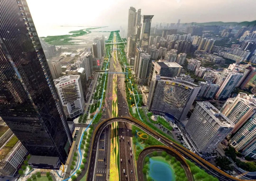 城市再发展,大道再出发。城市发展将更关注人的需求,深南大道也在新的需求下赋予更多的意义 。深南大道横穿两条生物廊道、四条山海绿廊、两条城市人文走廊,是缝合城市的重要纽带,将会变成连山通海的超级公园带,成为一个无界公园,成为市民公共活动的场所。
