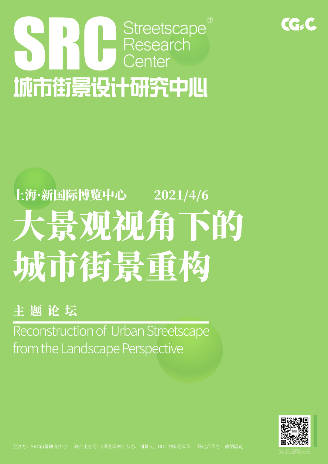 2021年CGC中国花园节开启在即,本届花园节中,SRC街景研究中心将举办主题论坛“大景观视角下的城市街景重构”,在此诚邀业界专家及单位积极参与!